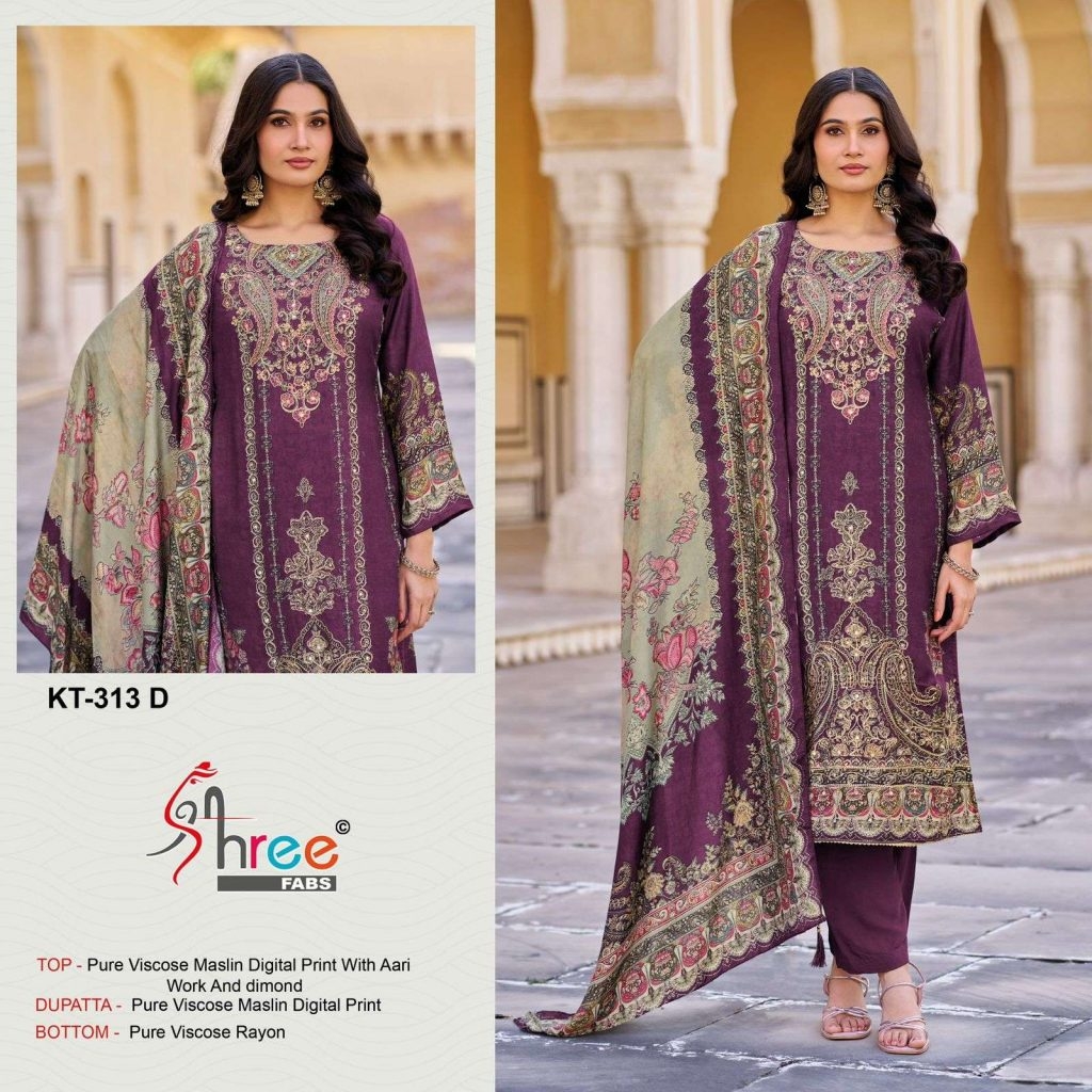 | Name: | Shree Fabs Kt- 313 A To D Series Pure Viscous Maslin Digital Print And Aari Work With Dimond Pakistani Salwar Kameez In Wholesale Surat |