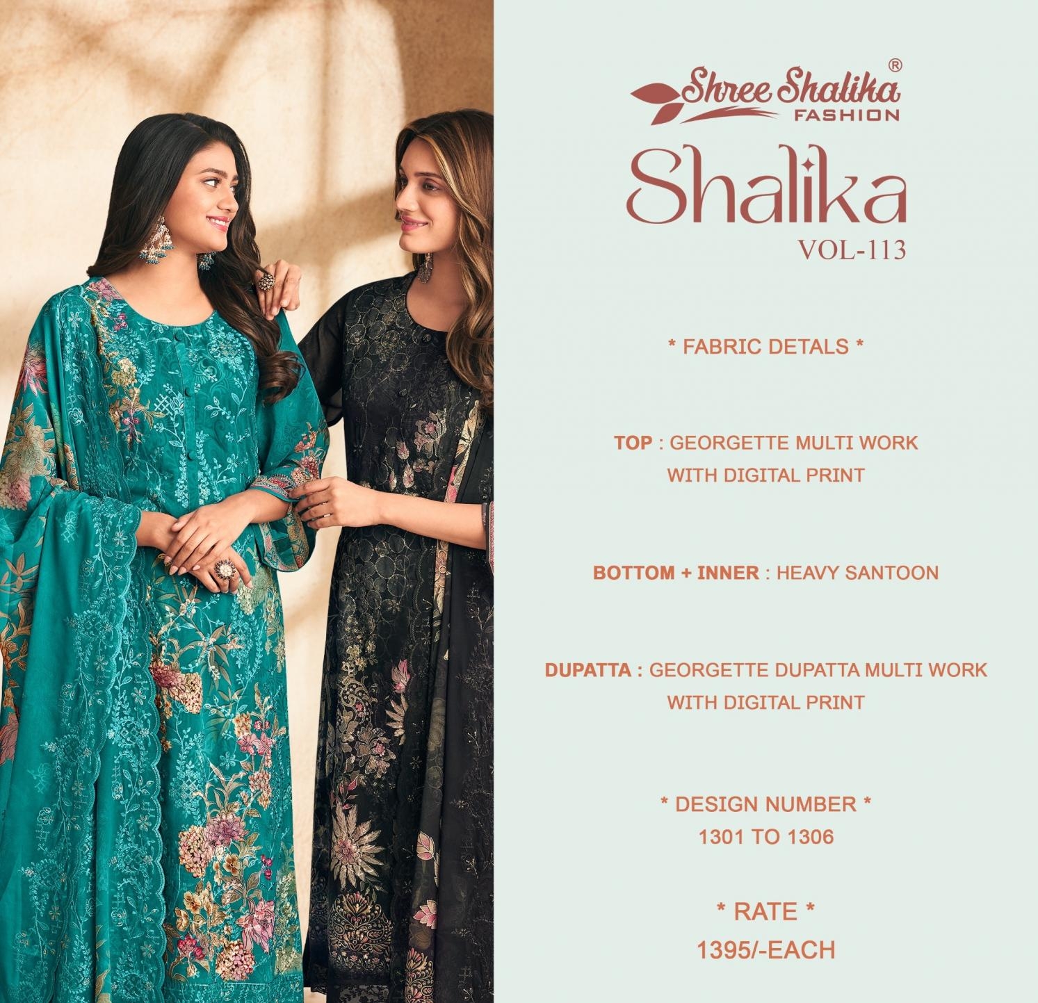 | Name: | Shree Shalika Fashion Shalika Vol 113 Series 1301 To 1306 Georgette Classic Suits In Wholesale Surat |