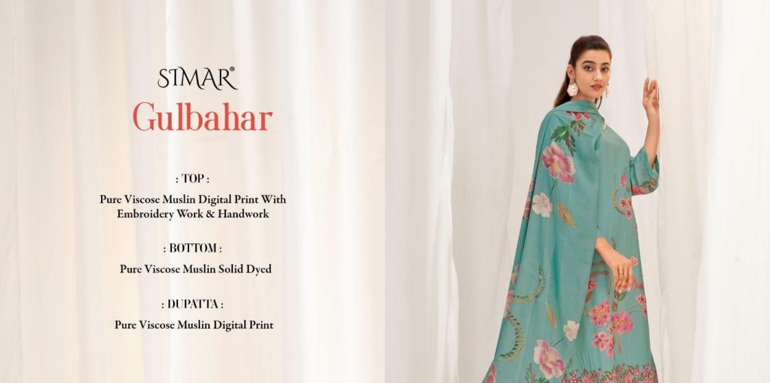 | Name: | Simar Glossy Gulbahar Series 1812 Viscose Muslin Wholesale Suit |