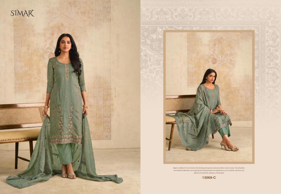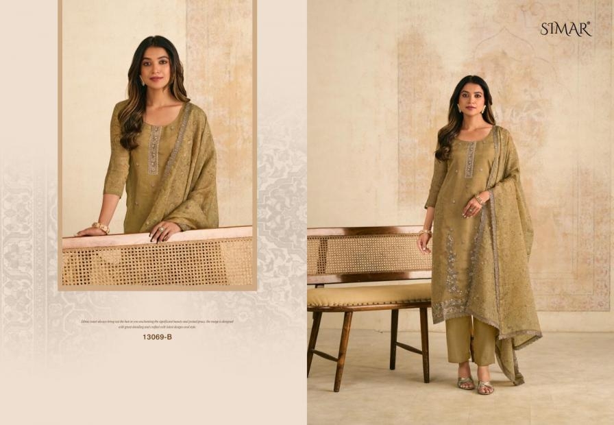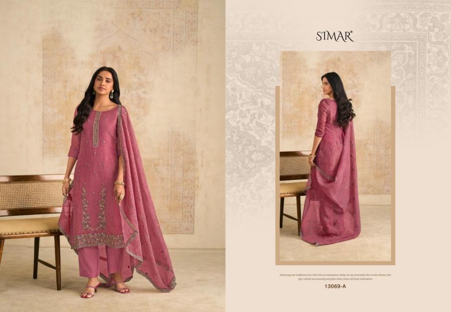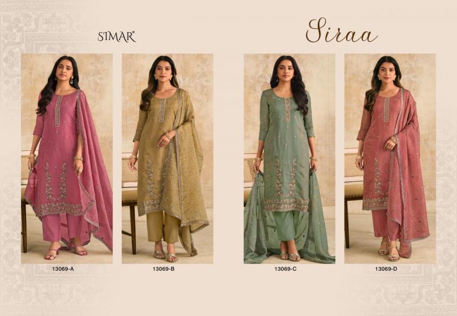 | Name: | Simar Glossy Siraa Series 13069 Organza Aura Wholesale Suit Ins Surat |