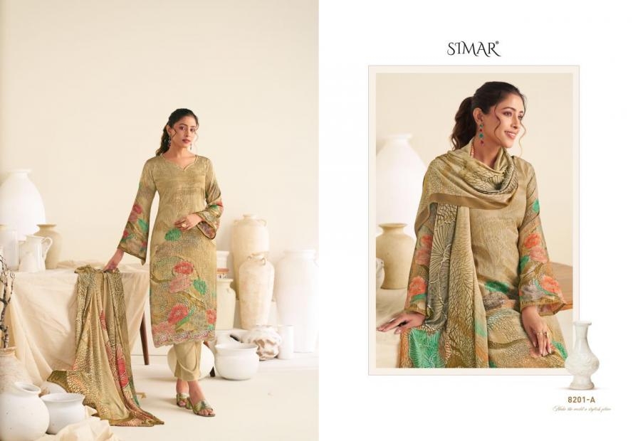 | Name: | Simar Glossy Vastra Series 8201 Viscose Muslin Wholesale Suit In Surat |