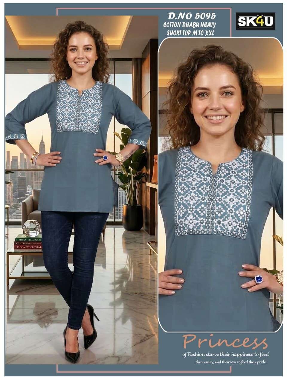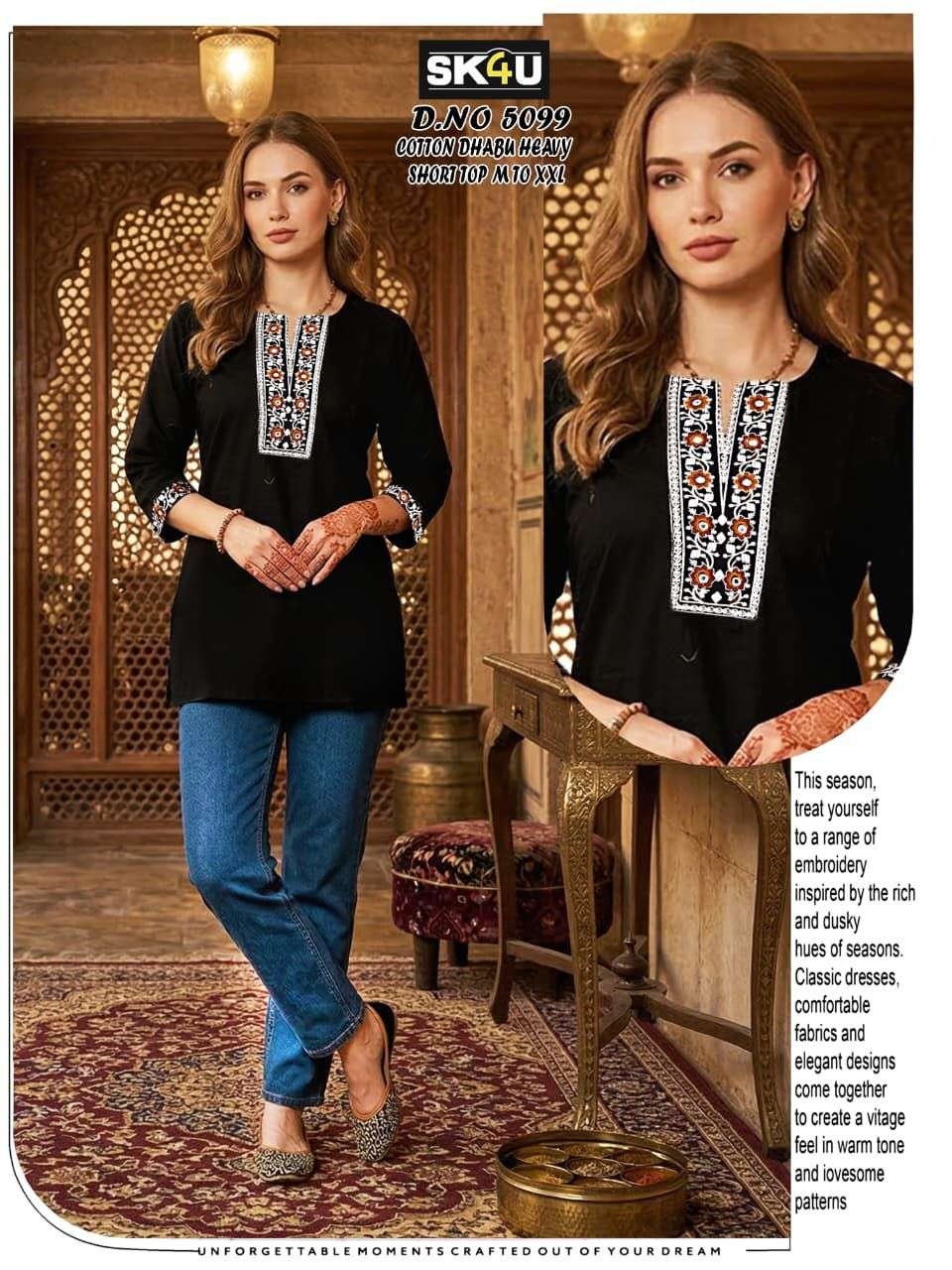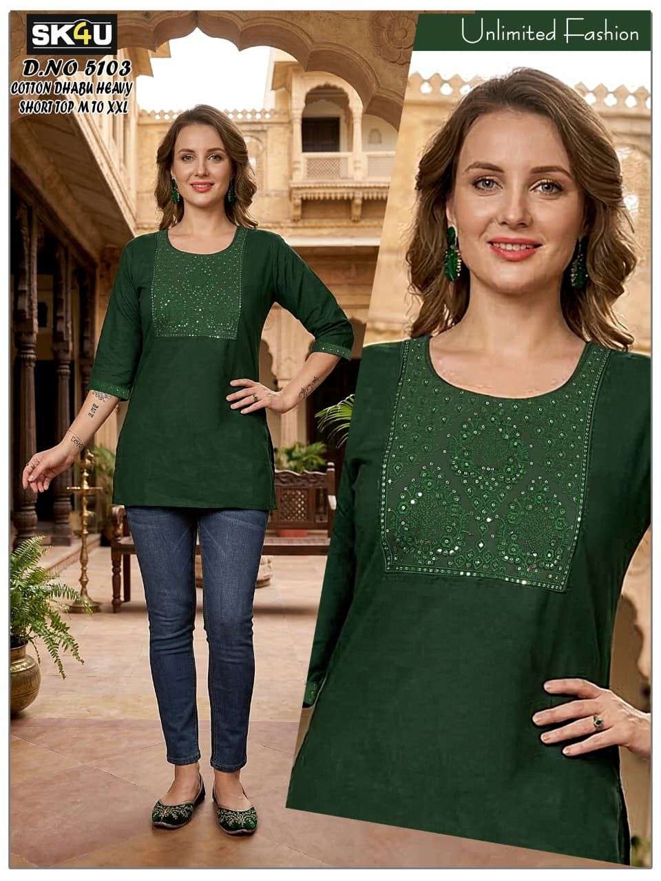 | Name: | Sk4u Readymade Trendy Design Cotton Dhabu Short Tops | |