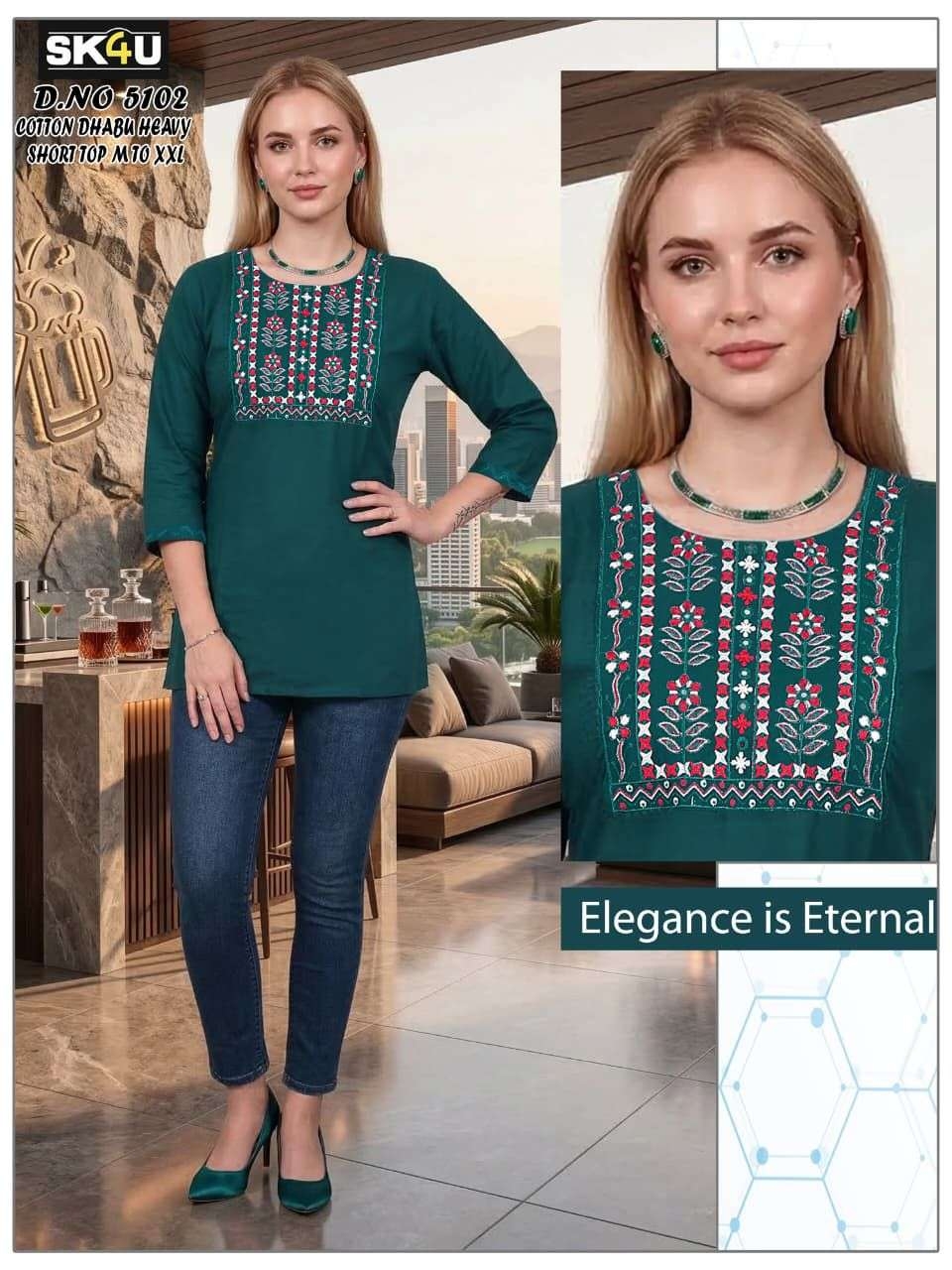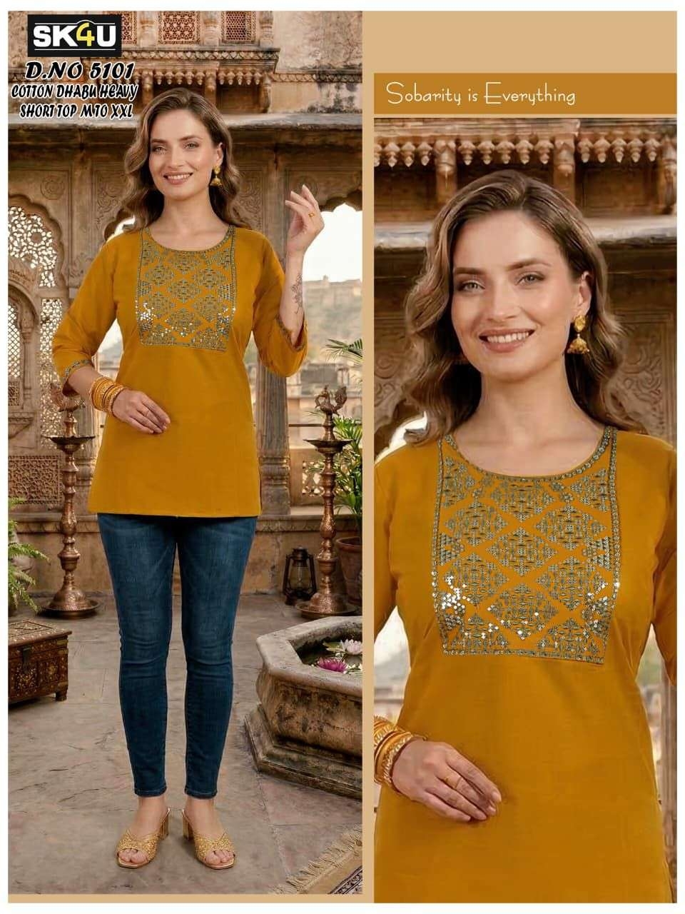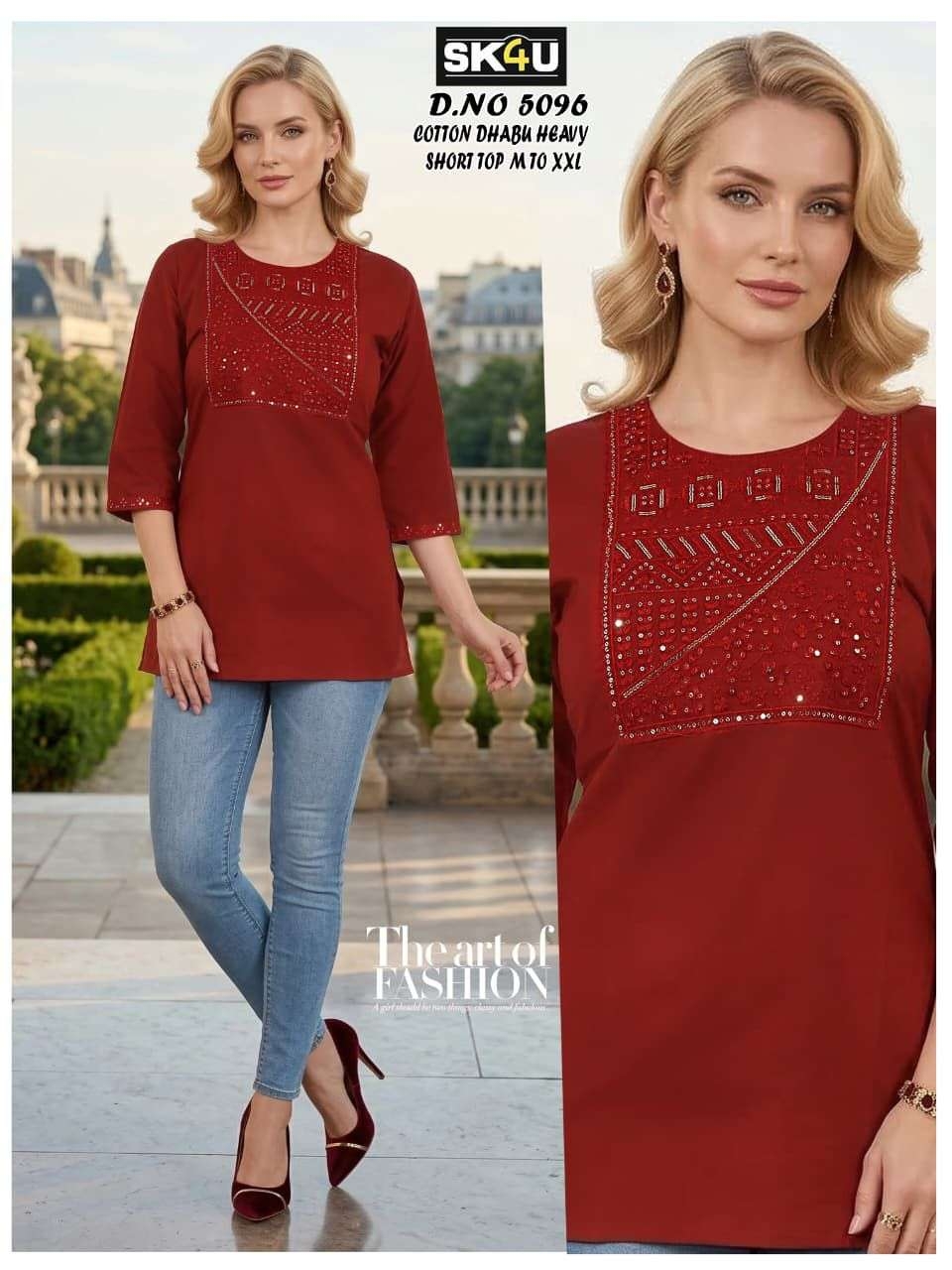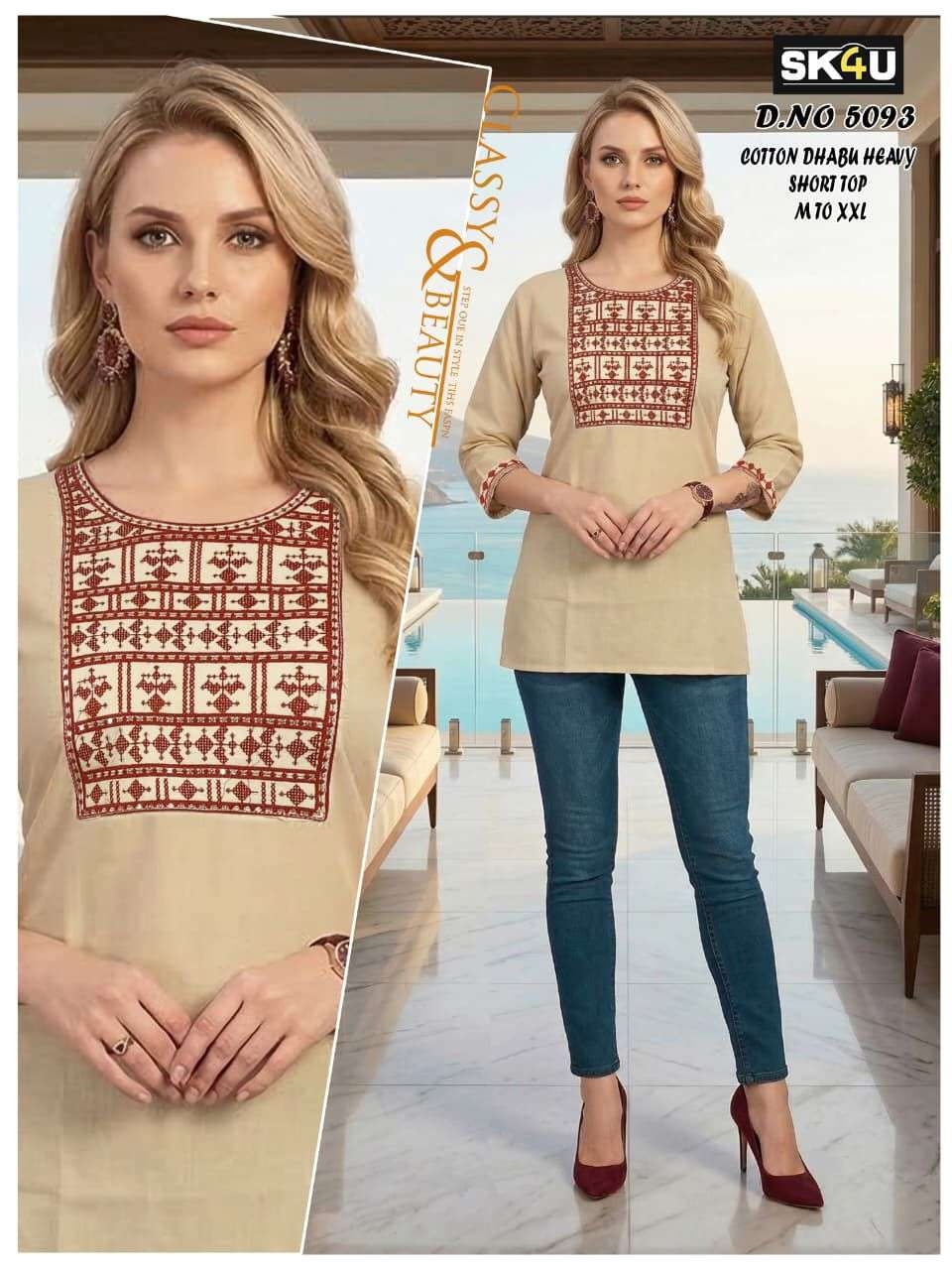 | Name: | Sk4u Readymade Trendy Design Cotton Dhabu Short Tops | |