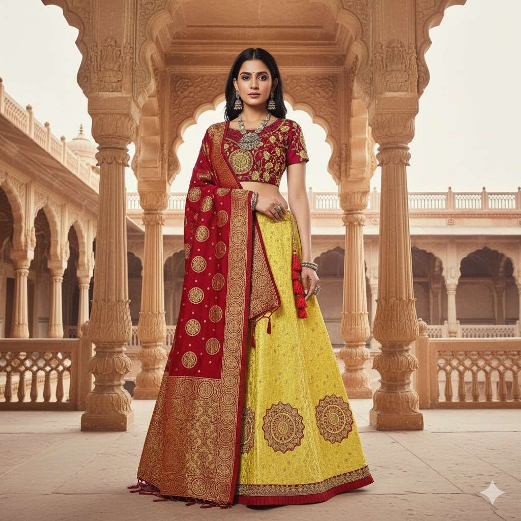 | Name: | Sl Mix Festival Wear Lehenga Brocade Silk With Weaving Work Lehenga |