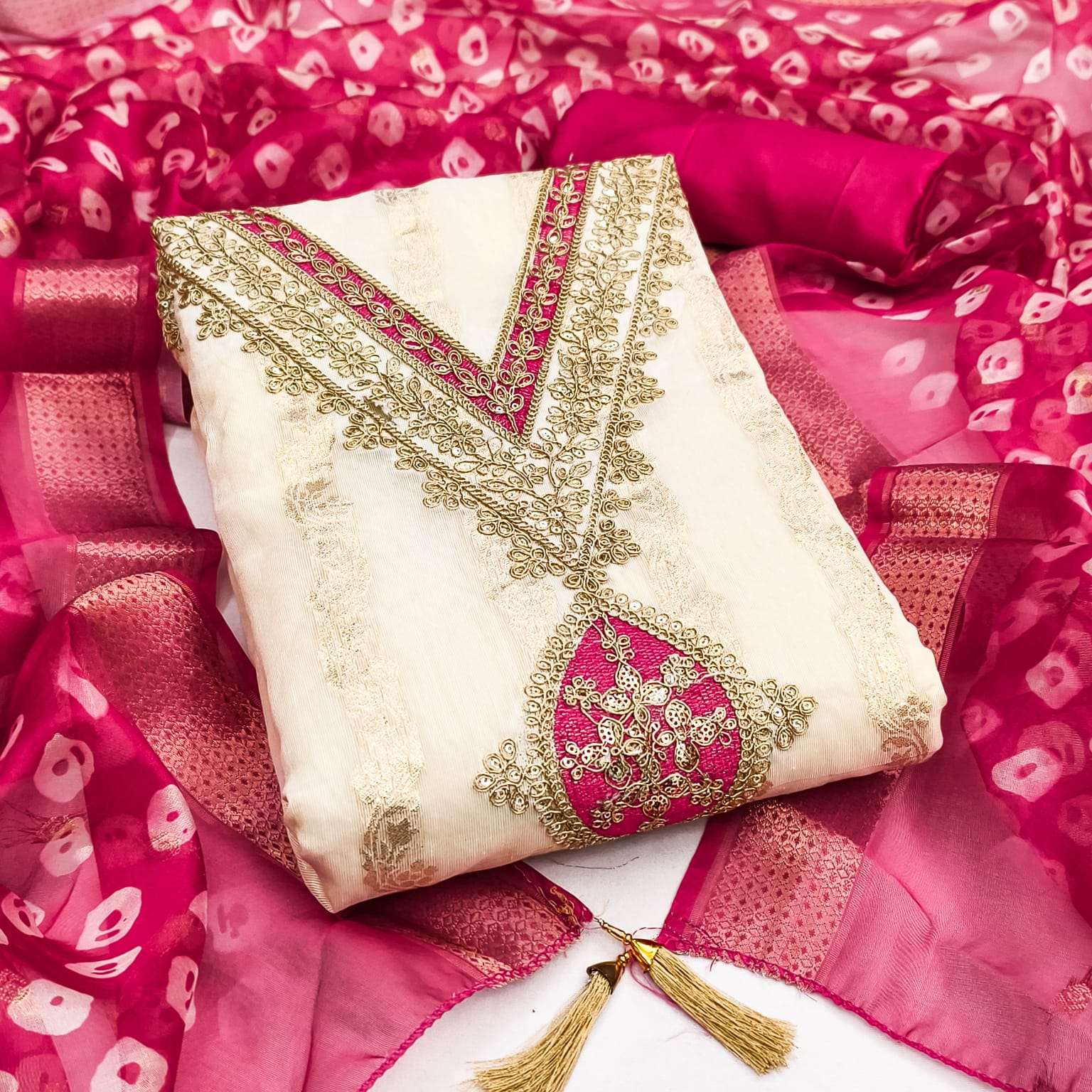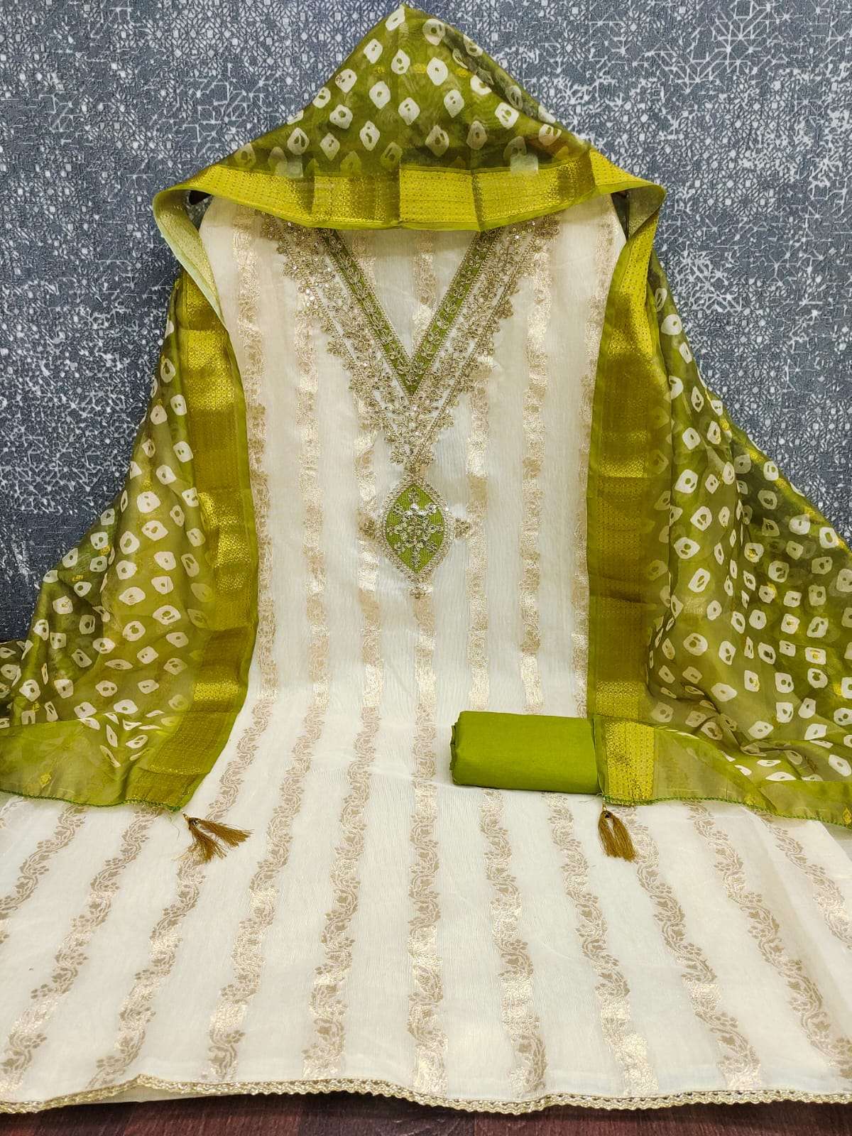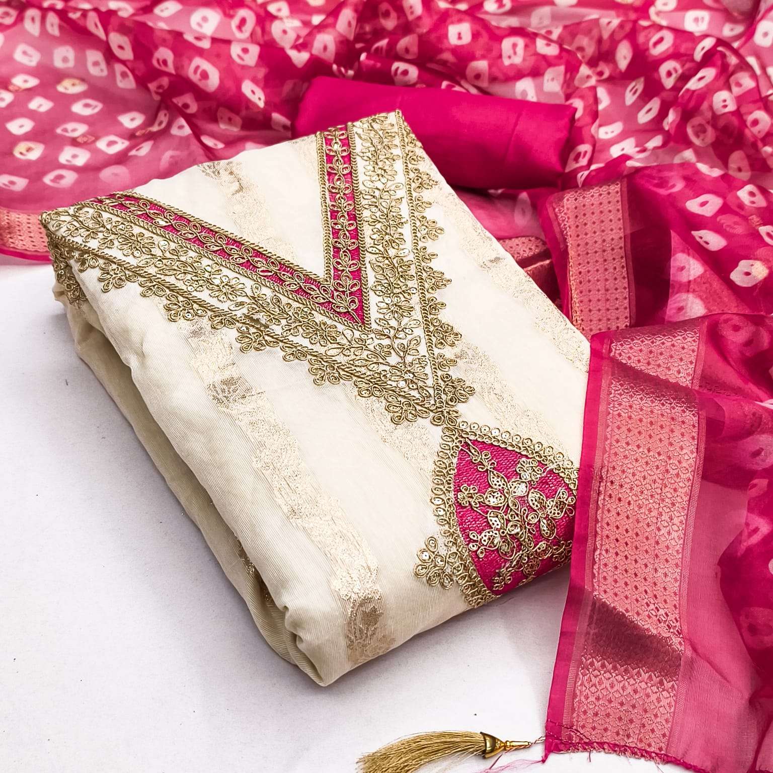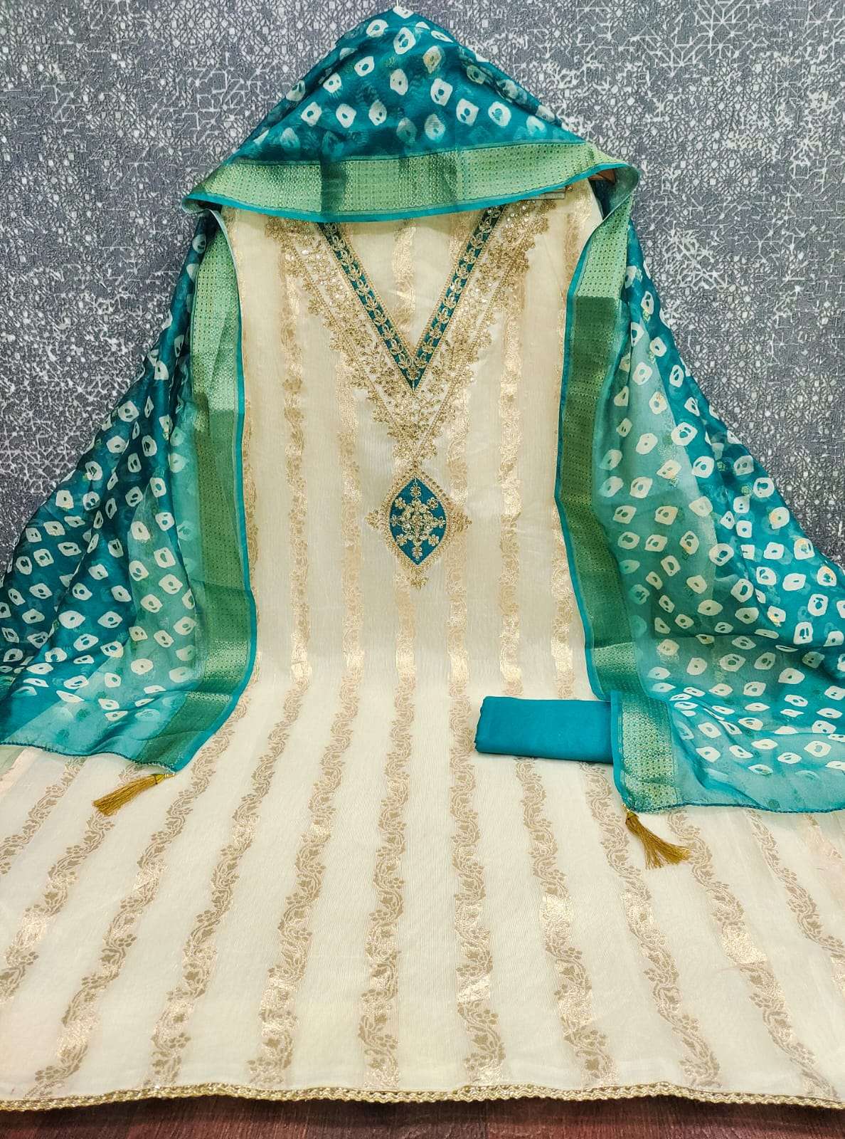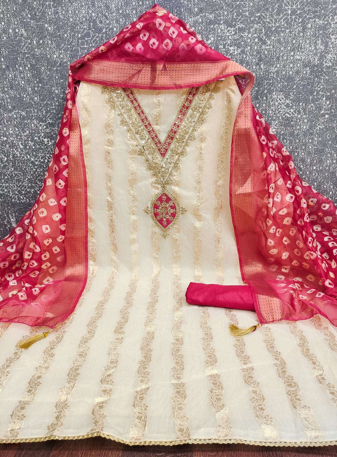 BOTTOM + INNER Fabrics:- Dupatta: ORGANZA SILK ZAKARD DIGITAL PRINT ▪ Size: MATERIALS