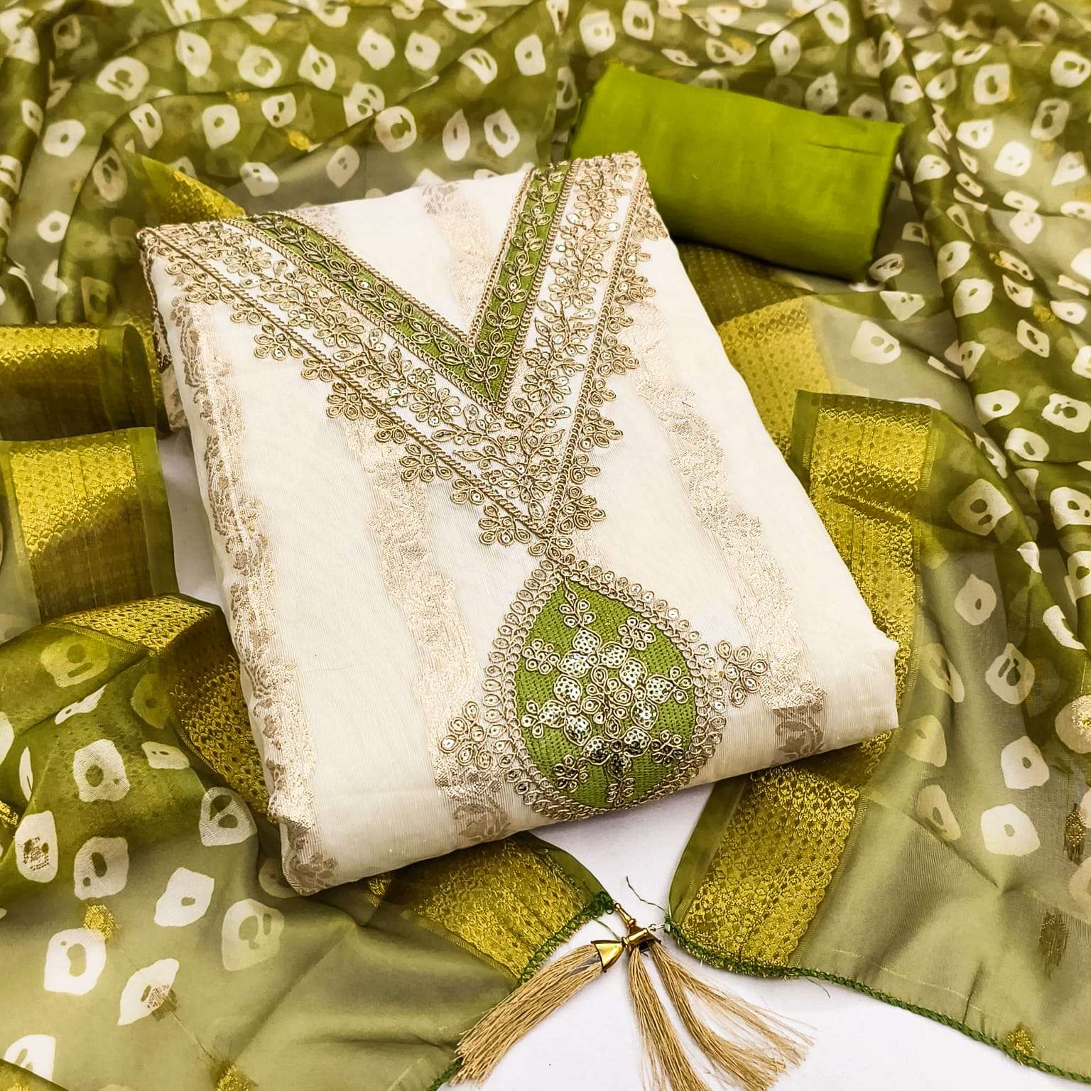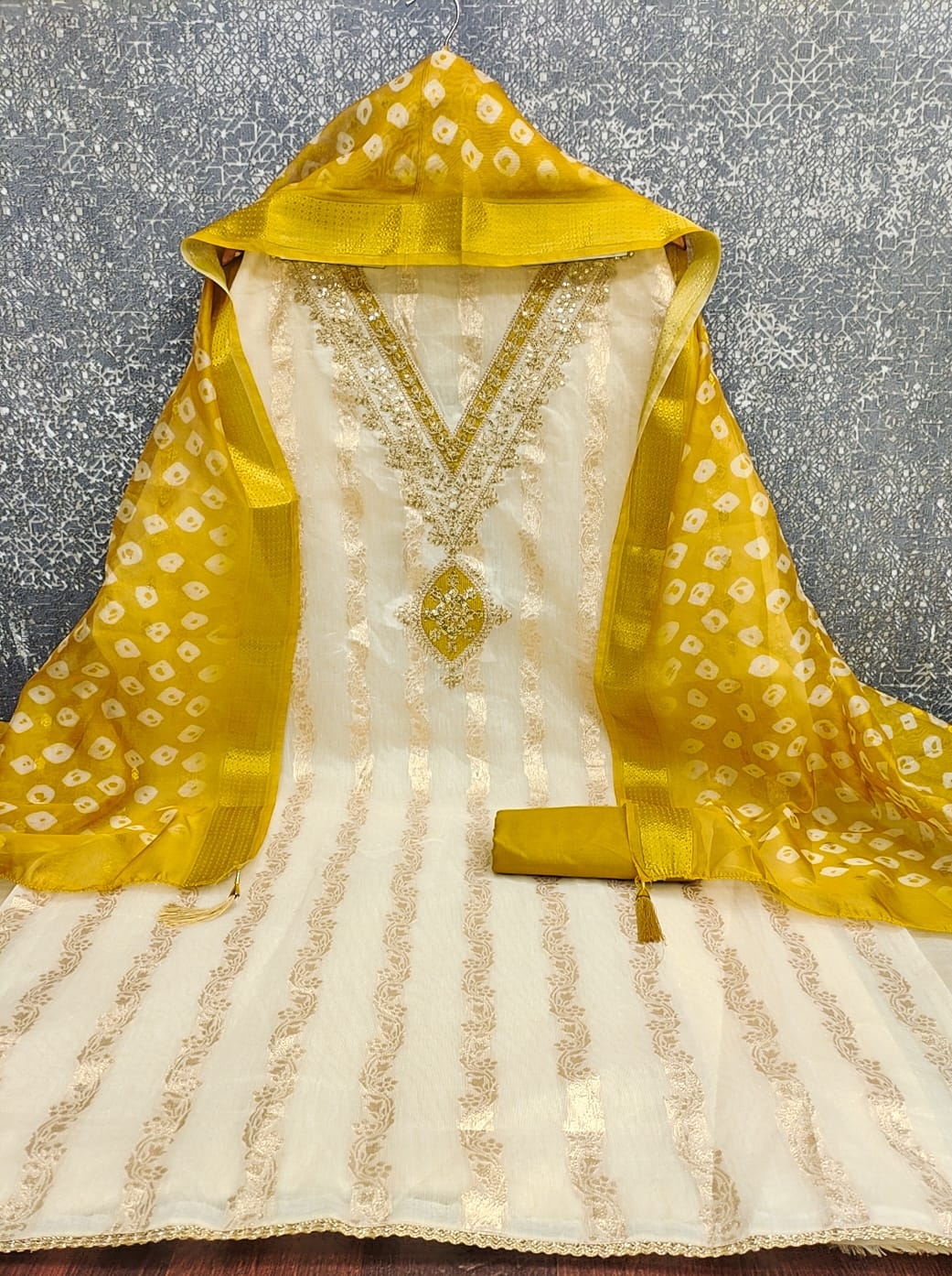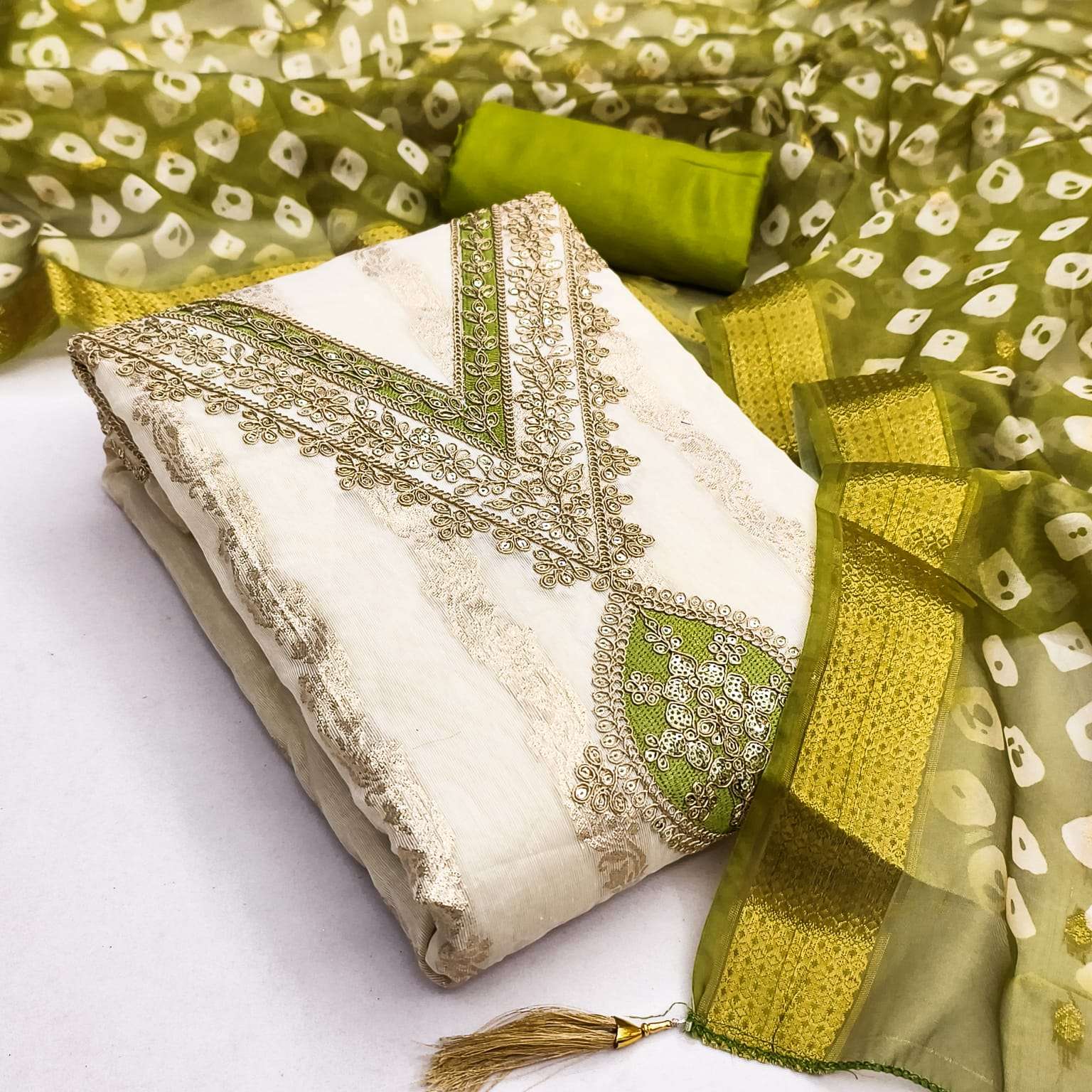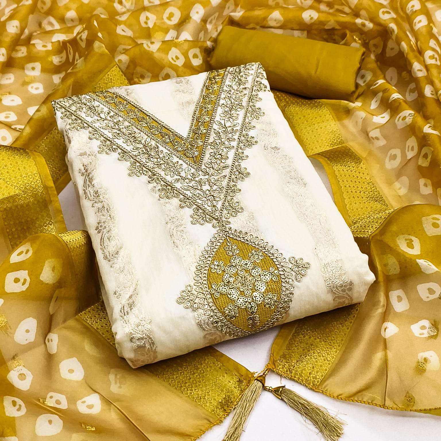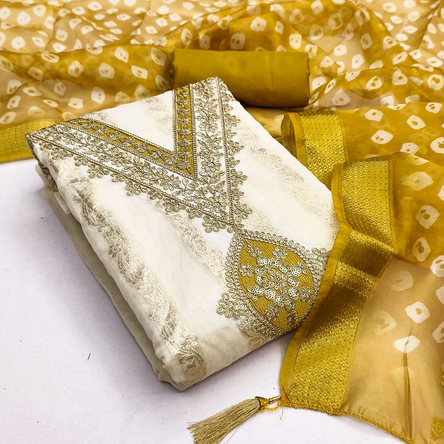 BOTTOM + INNER Fabrics:- Dupatta: ORGANZA SILK ZAKARD DIGITAL PRINT ▪ Size: MATERIALS