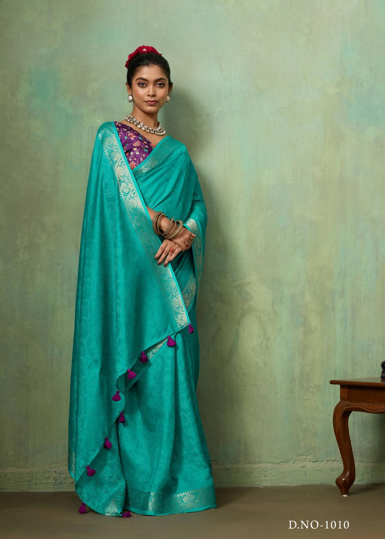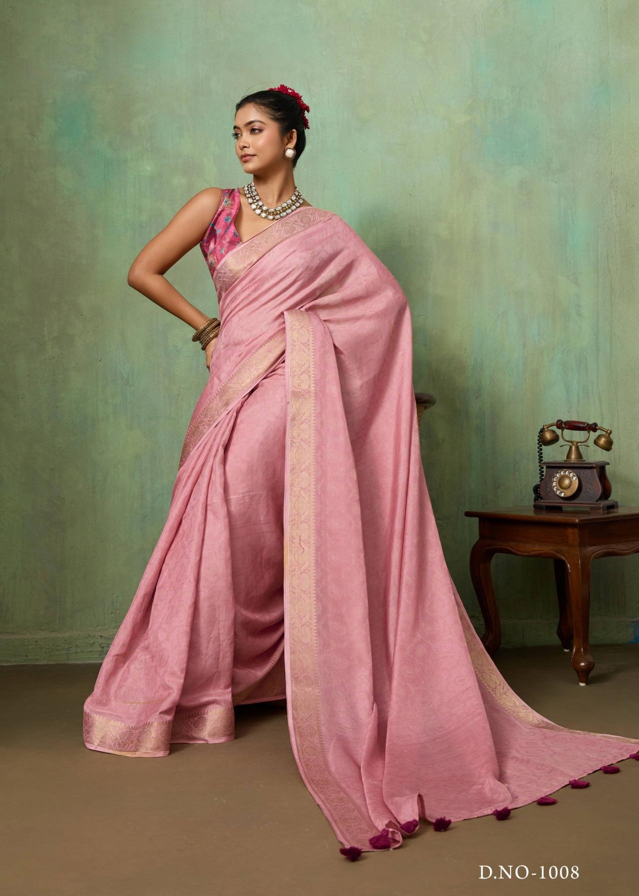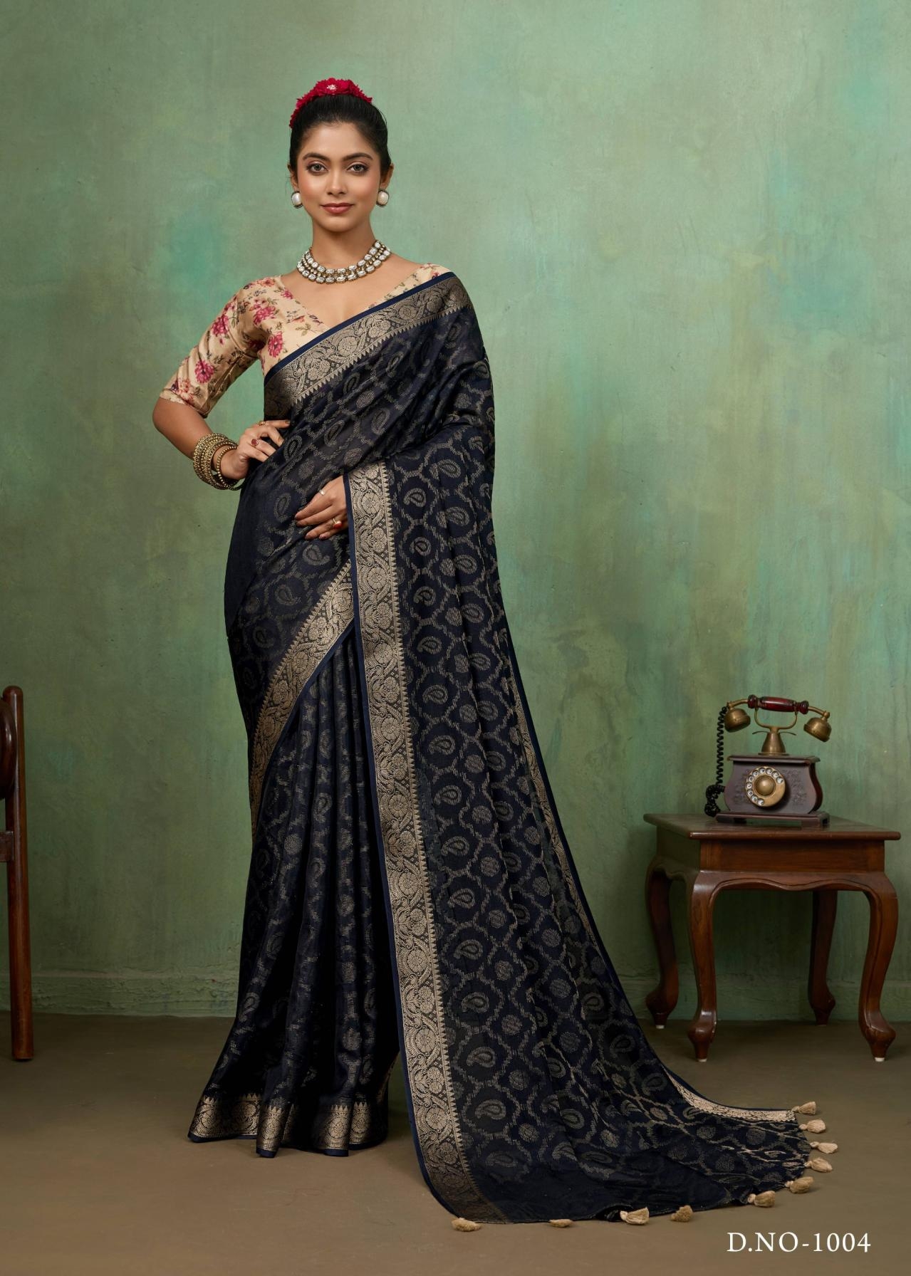 | Other Details: | SR MANGALDHARA SOFT SILK WITH WEAVING JEQARD BORDER & TUSSER DIGITAL BLOUSE 10 PCS PRICE - 730/- + GST |