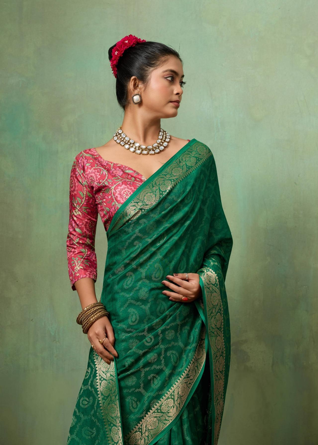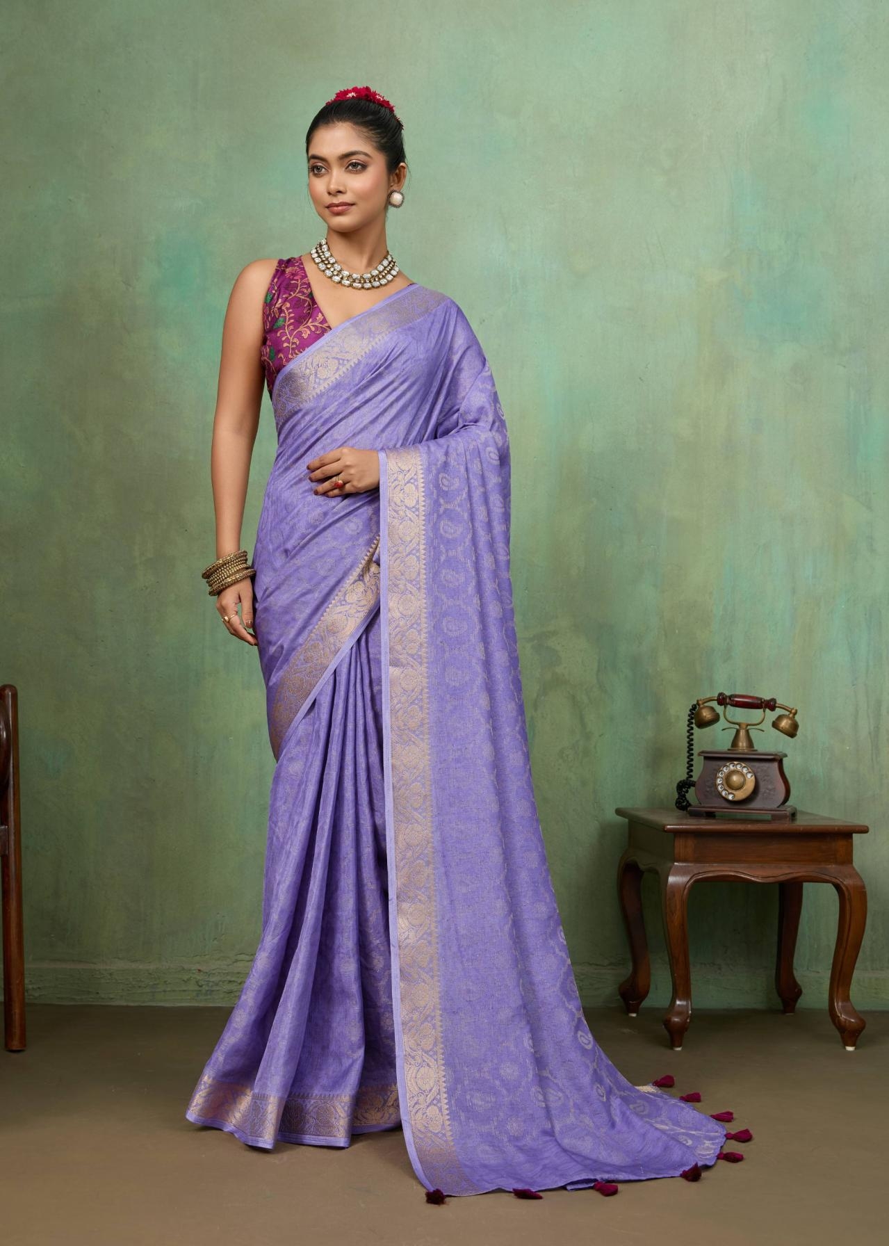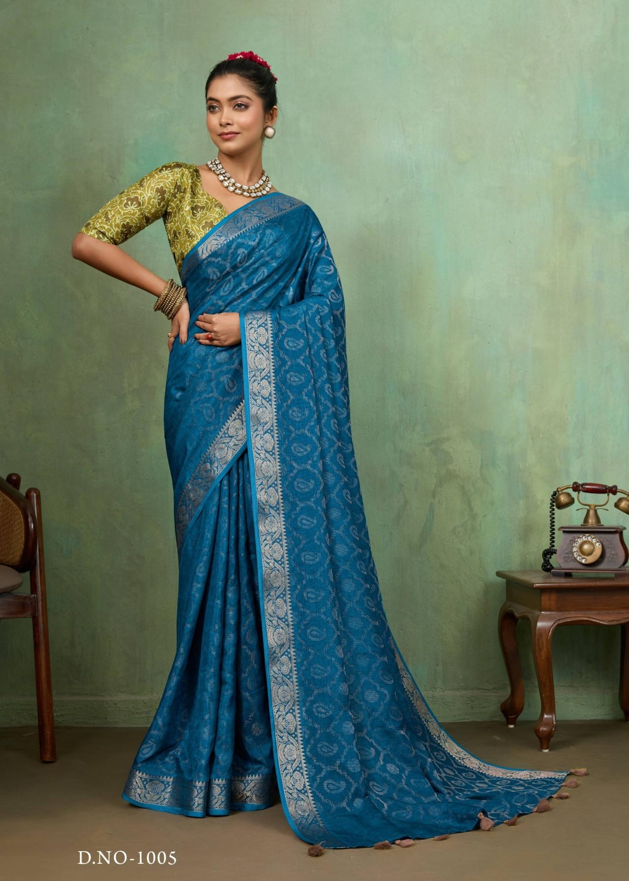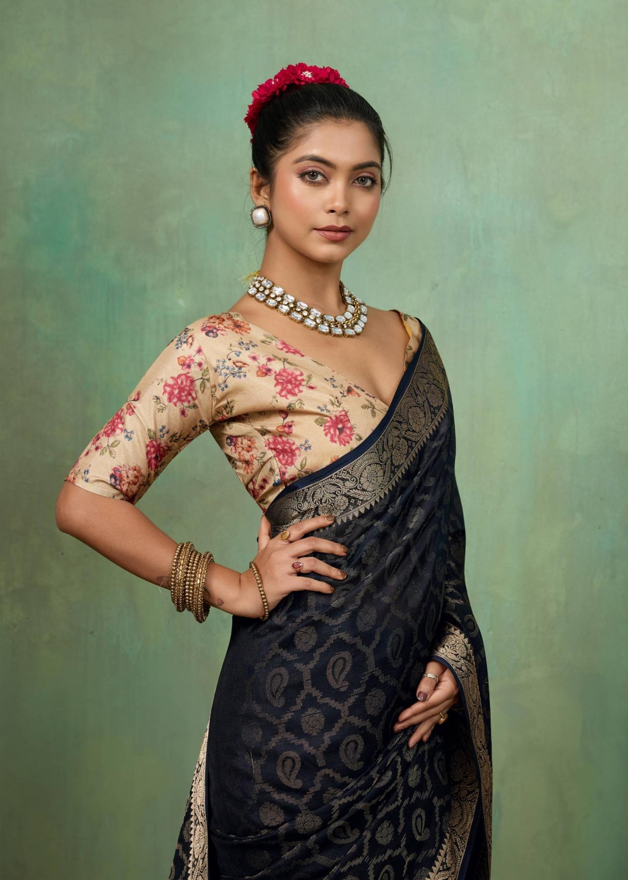 | Other Details: | SR MANGALDHARA SOFT SILK WITH WEAVING JEQARD BORDER & TUSSER DIGITAL BLOUSE 10 PCS PRICE - 730/- + GST |