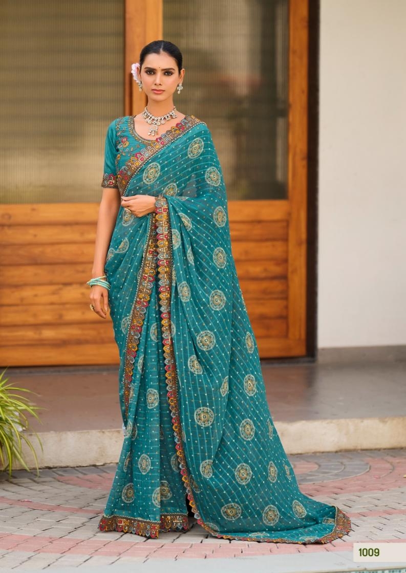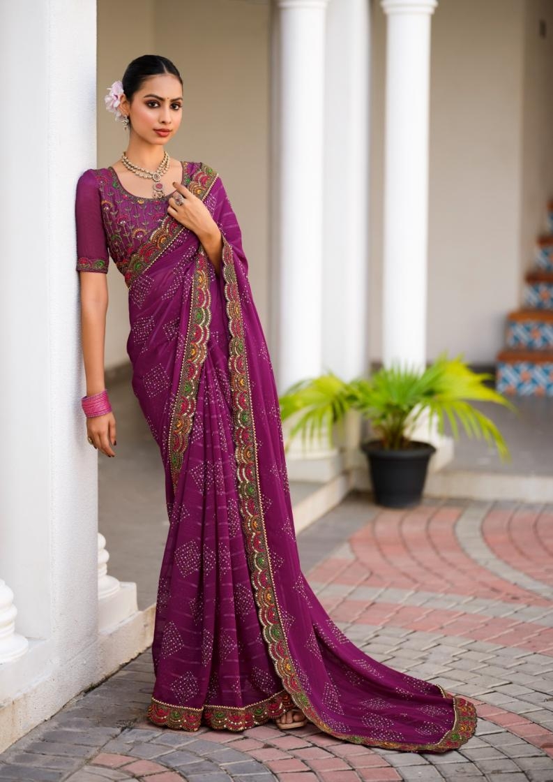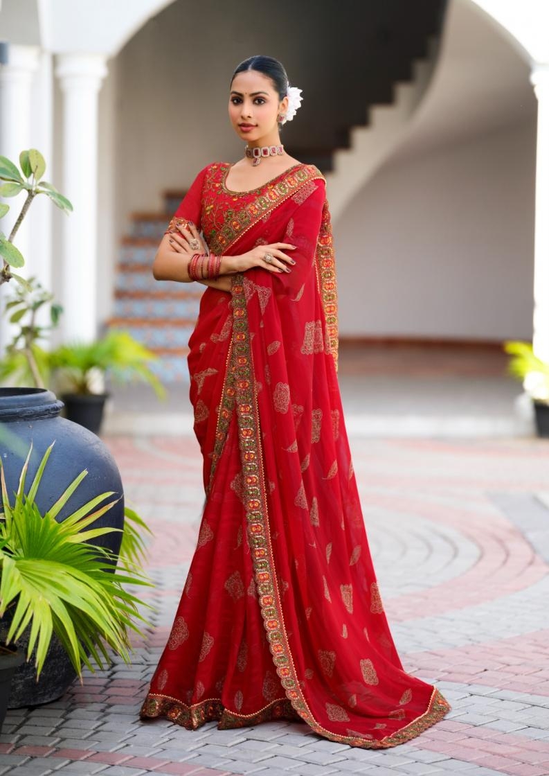 EMBROIDERY BORDER Georgette Fancy pattern fabric Booking started hurry up |