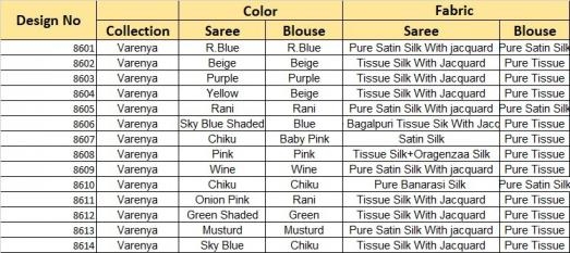 | Name: | Sulakshmi Varenya Series 8601 To 8614 Tissue Silk With Jacquard Occasion Wear Sarees In Wholesale Surat |
