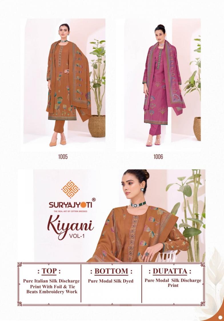 | Name: | Suryajyoti Kiyani Vol 1 Series 1001-1006 Italian Silk Wholesale Suit In Surat | |