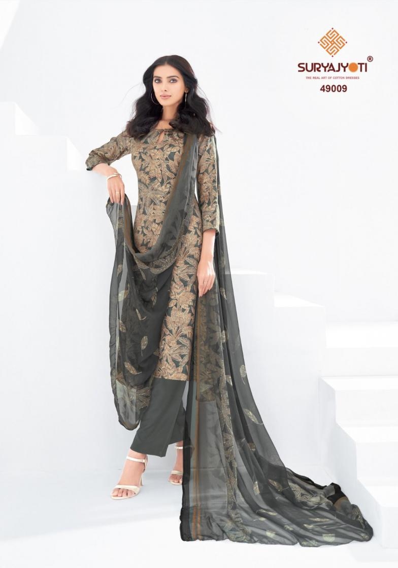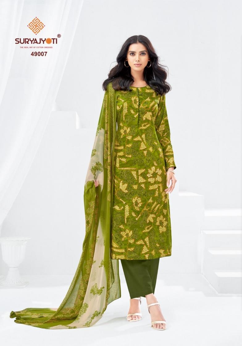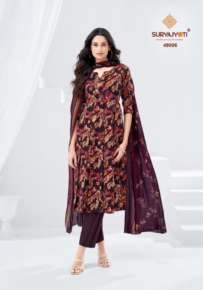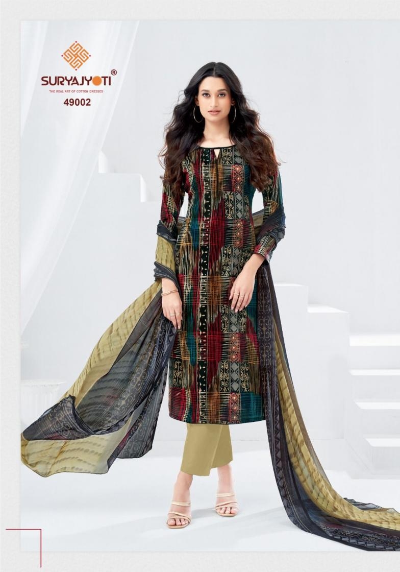 Other Details: | 👫DEAR CUSTOMER👫 🙏WELCOME TO SURYAJYOTI 😍LAUNCHING OF SURYAJYOTI 'S NEW PRINT CATALOG 📙CATALOGUE:- NAISHAA VOL- 49 👗TOP:- JAAM SATIN PRINT 🧣DUPATTA:- NAZNEEN PRINT 👖BOTTON:- PURE COTTON CUT:- 👚2.50-👖2.50-🧣2.25 💸RATE:- 565/- ONLY 🧳PACKING:- EXCLUSIVE POUCH WITH BAG PACK |