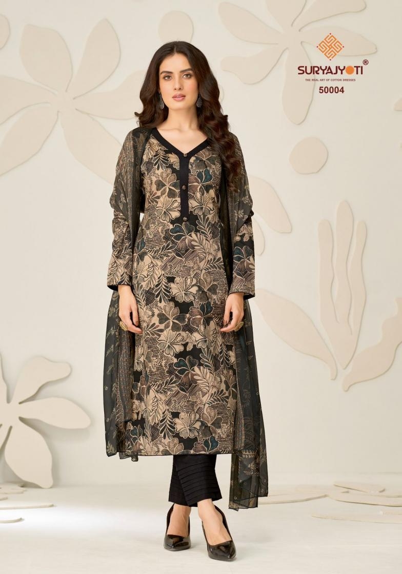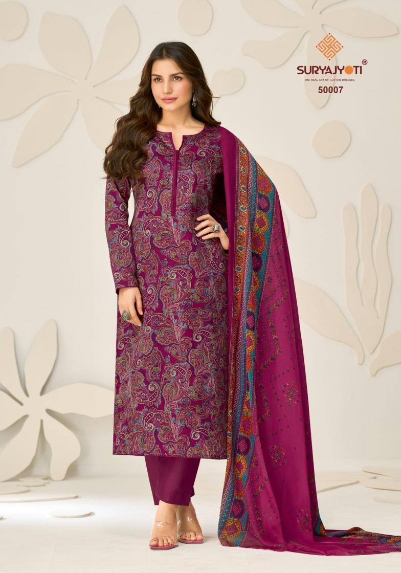 | Other Details: | 👫DEAR CUSTOMER👫 🙏WELCOME TO SURYAJYOTI 😍LAUNCHING OF SURYAJYOTI 'S NEW PRINT CATALOG 📙CATALOGUE:- NAISHAA VOL- 50 👗TOP:- JAAM SATIN PRINT 🧣DUPATTA:- NAZNEEN PRINT 👖BOTTON:- PURE COTTON CUT:- 👚2.50-👖2.50-🧣2.25 💸RATE:- 575/-ONLY 🧳PACKING:- EXCLUSIVE POUCH WITH BAG PACK |