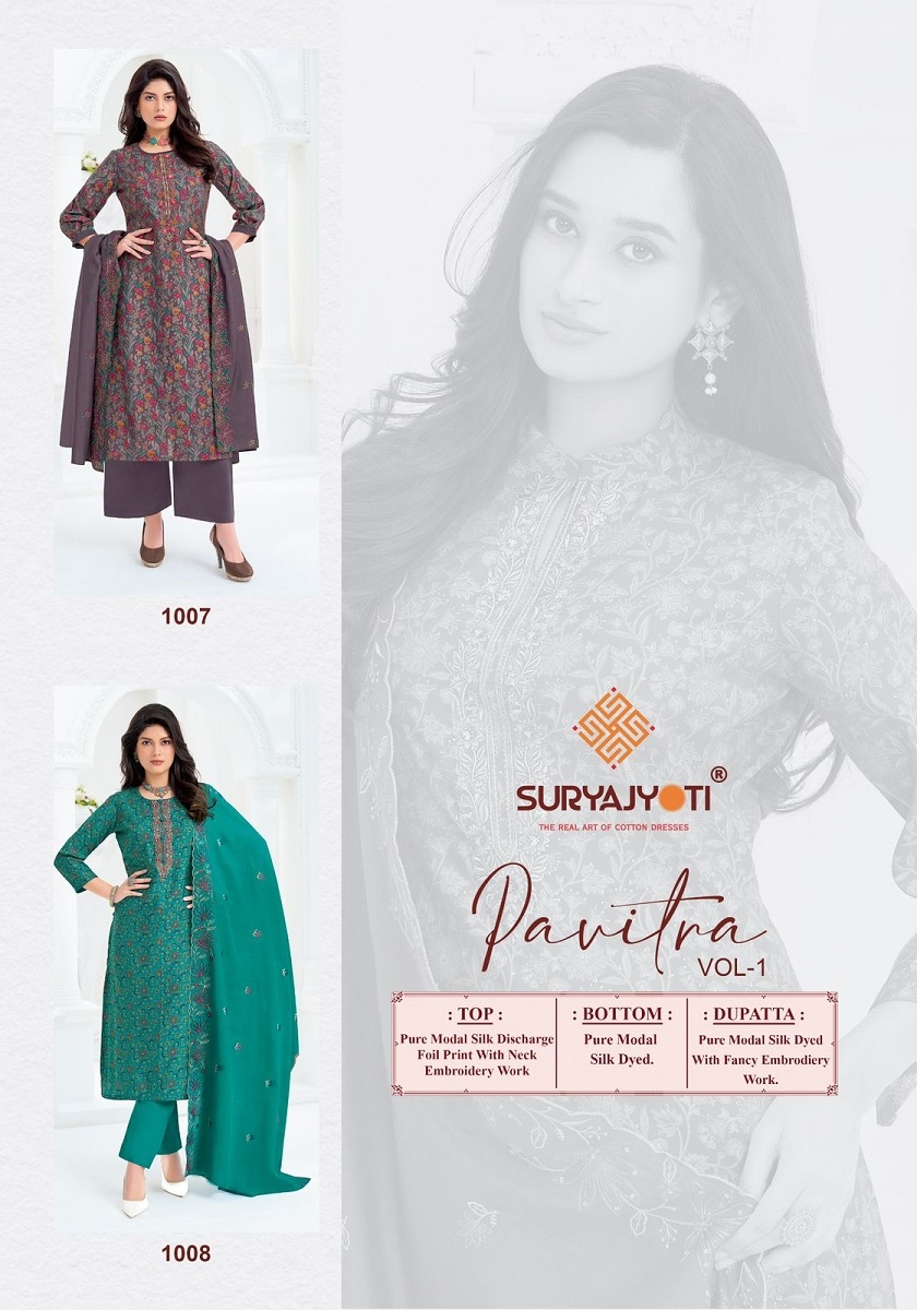 | Name: | Suryajyoti Pavitra Vol-1 Series 1001-1008 Pure Modal Silk Wholesale Suit |