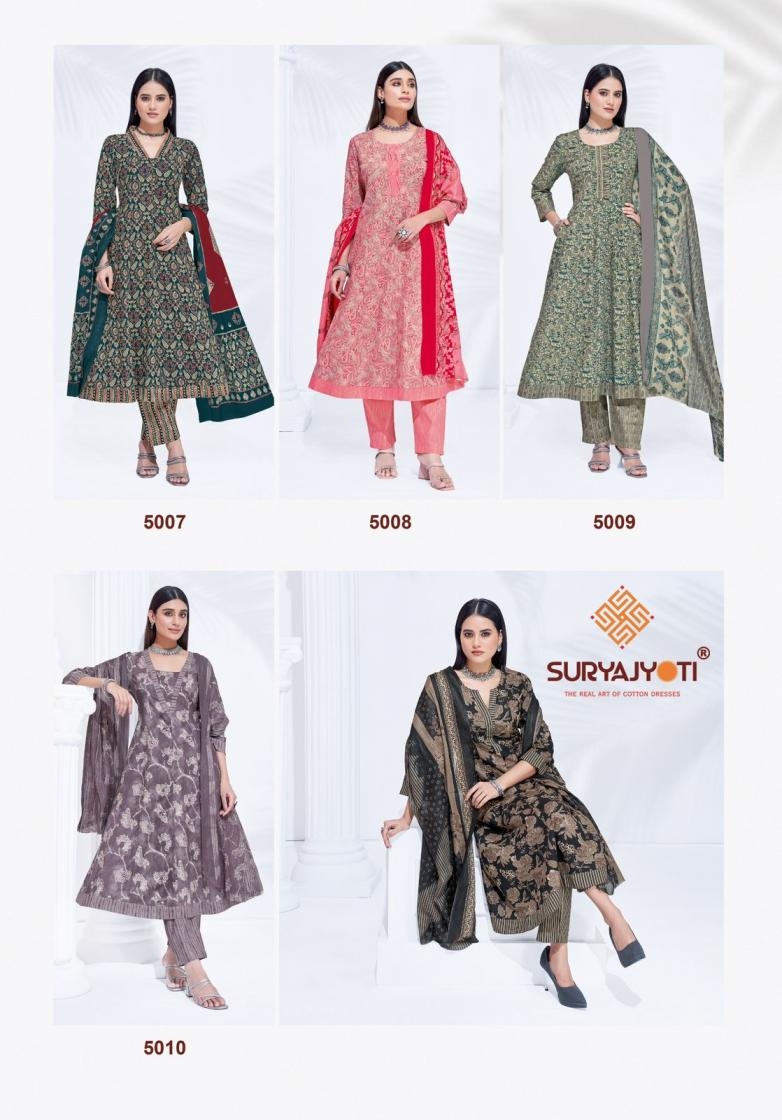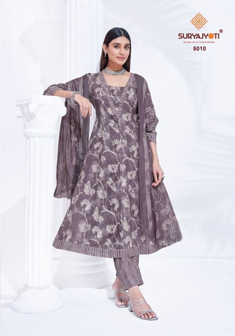 | Name: | Suryajyoti Rashi Vol 5 Series 5001 To 5010 Cotton Anarkali Readymade Stylish Big Size Suit In Wholesale Surat |