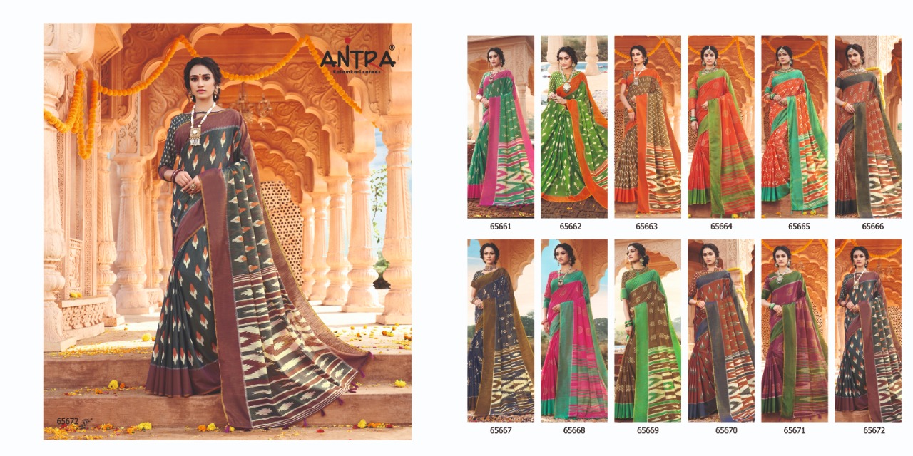 Other Details: | BRAND = ANTRA MERCHANT NAME = SWARA 3 Rate 769 per Pcs . Set to set . GST 5 Percent Extra FABRICS = N/P MEENAKSHI 1 SET = 12PCS |