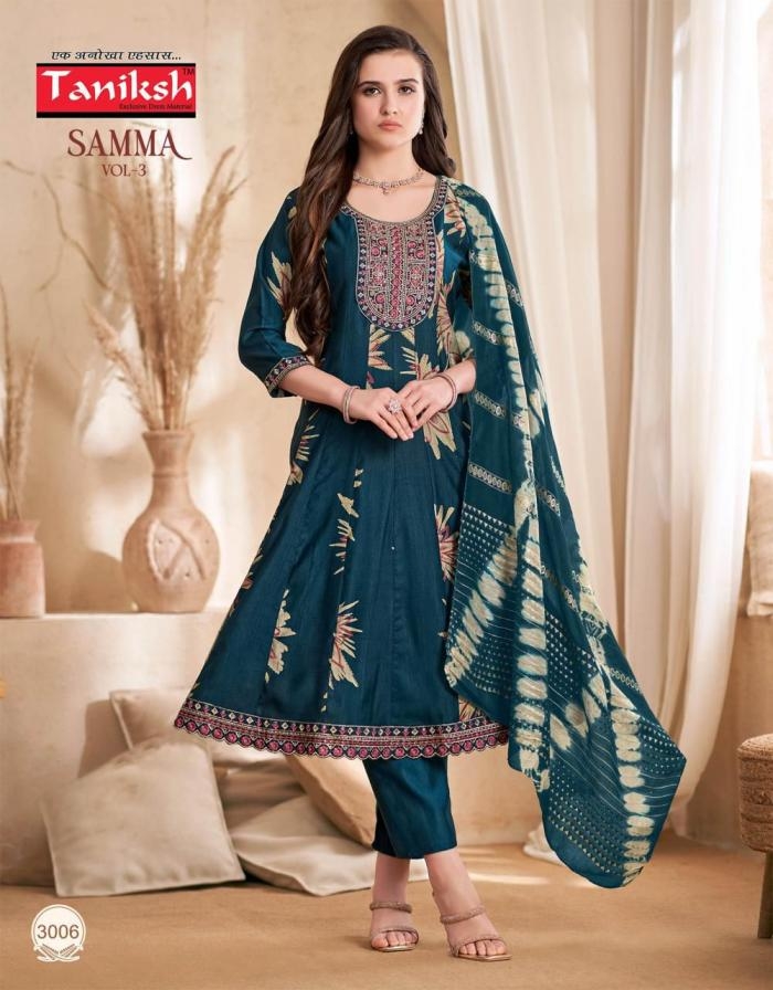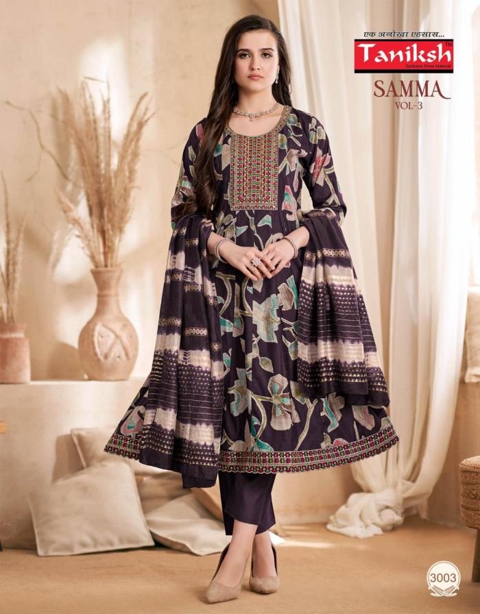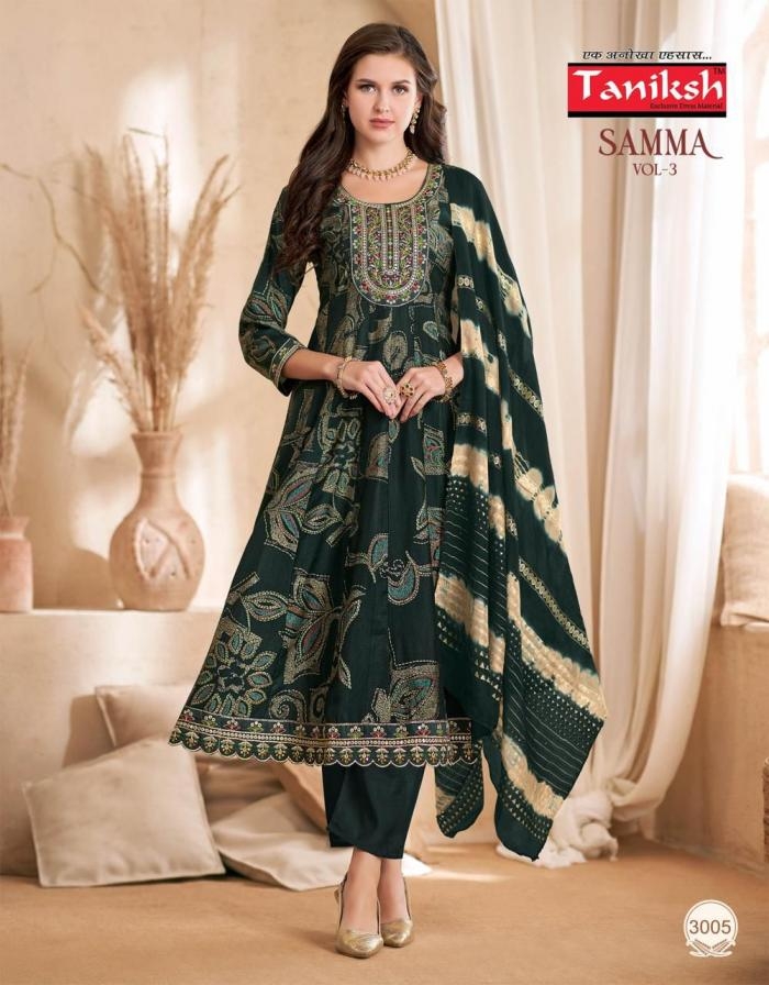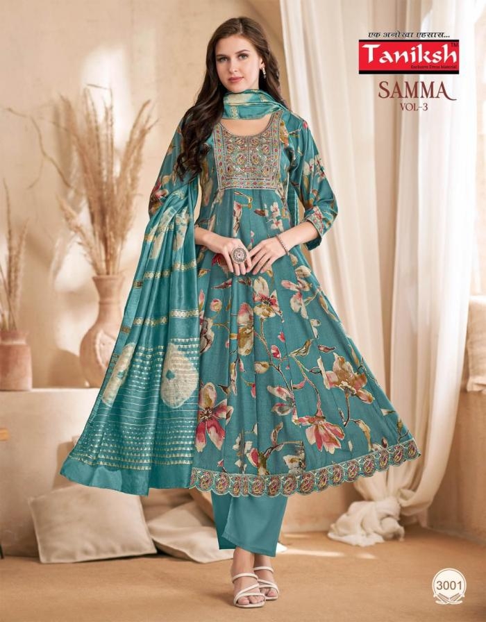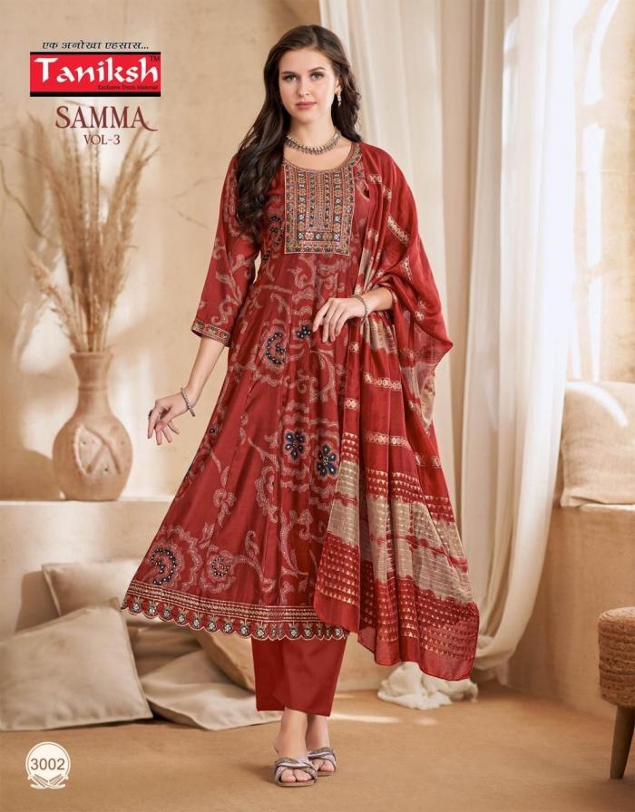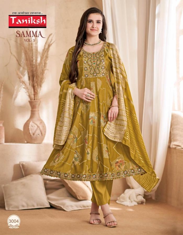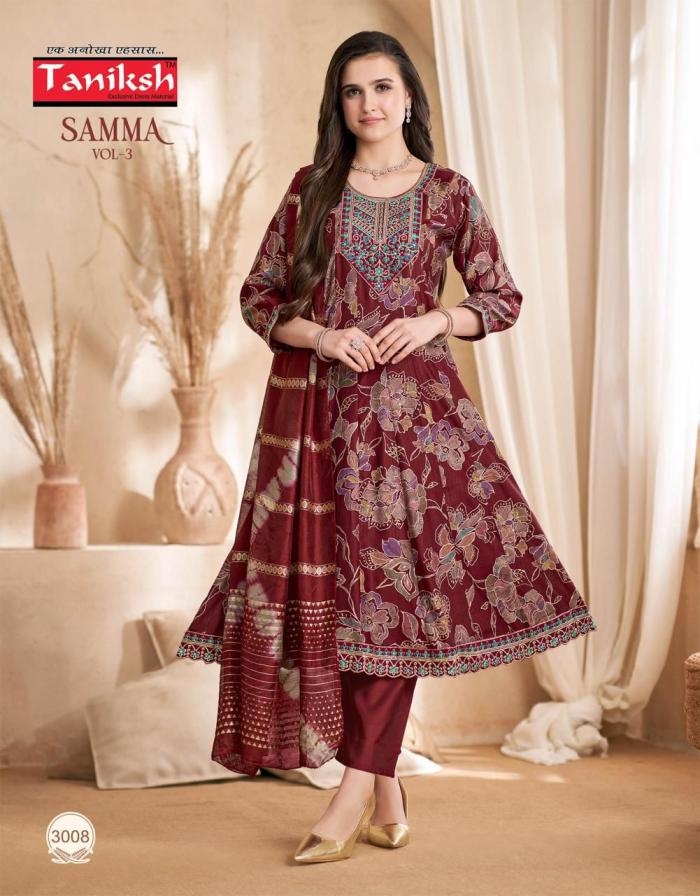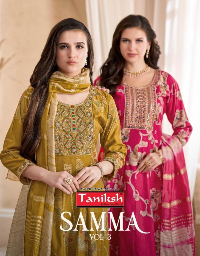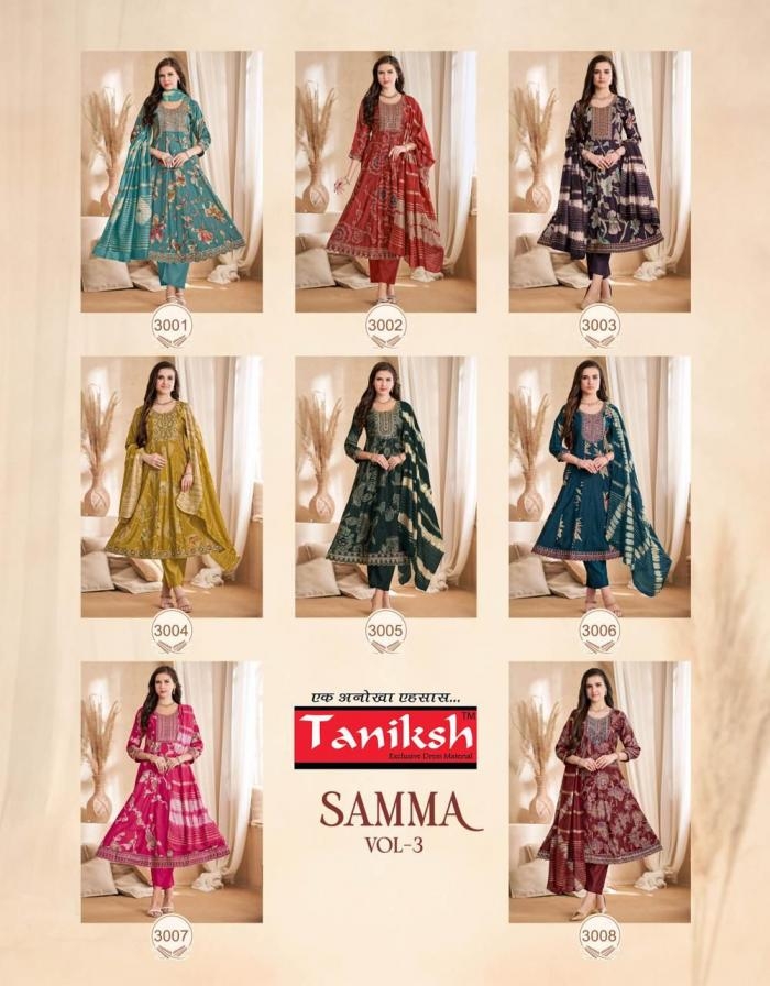 | Name: | Taniksh Samma Vol 3 Series 3001 To 3008 Vertican Full Stitch Suit In Wholesale Surat |