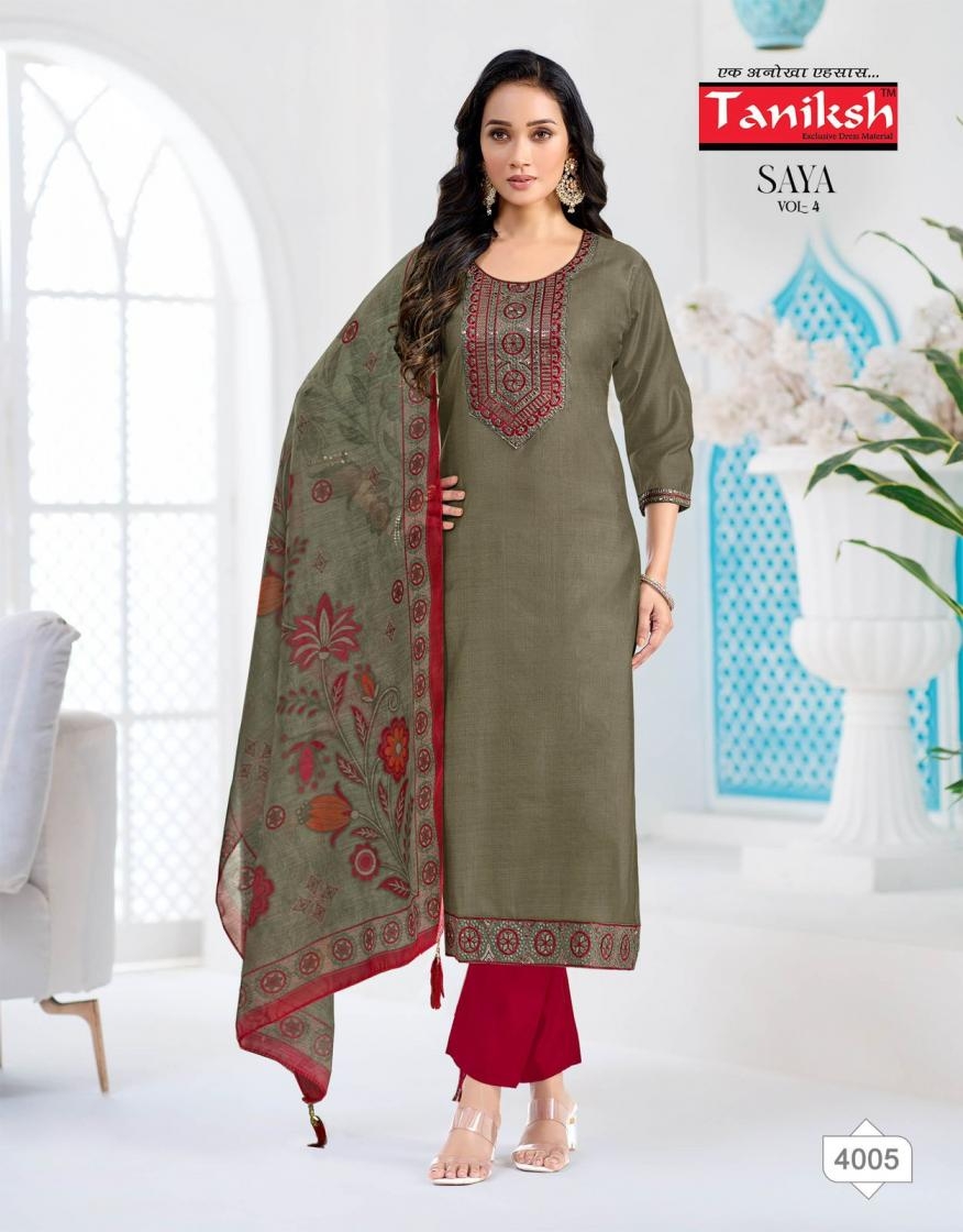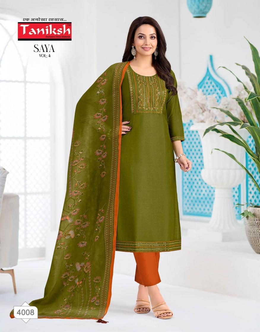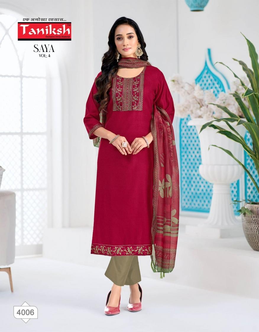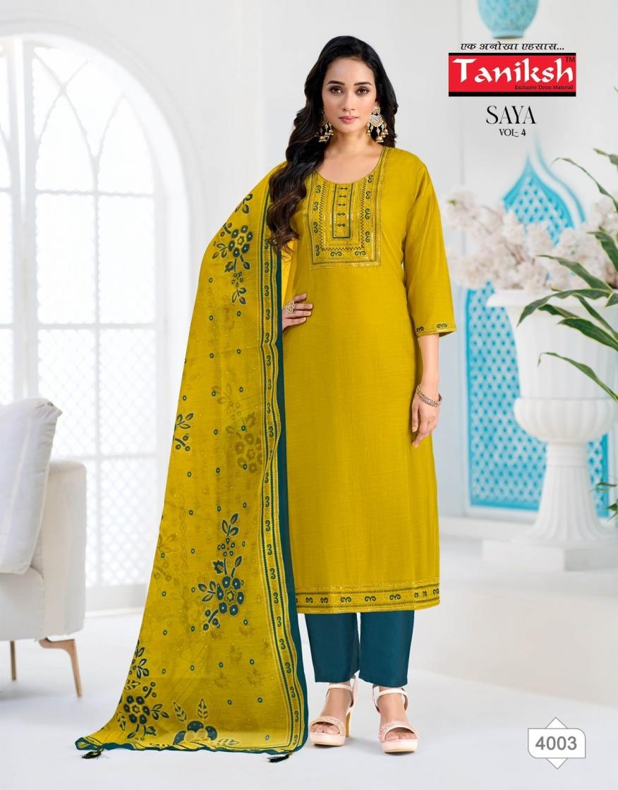 | Name: | Taniksh Saya Vol 4 Series 4001-4008 Vertical Print Readymade Suit | |