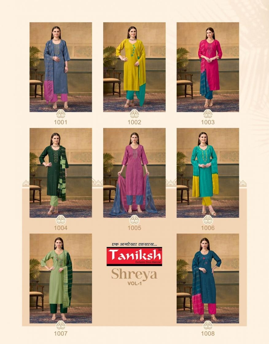 | Name: | Taniksh Shreya Vol 1 Series 1001 To 1008 Vertical Full Stitch Suit In Wholesale Surat |