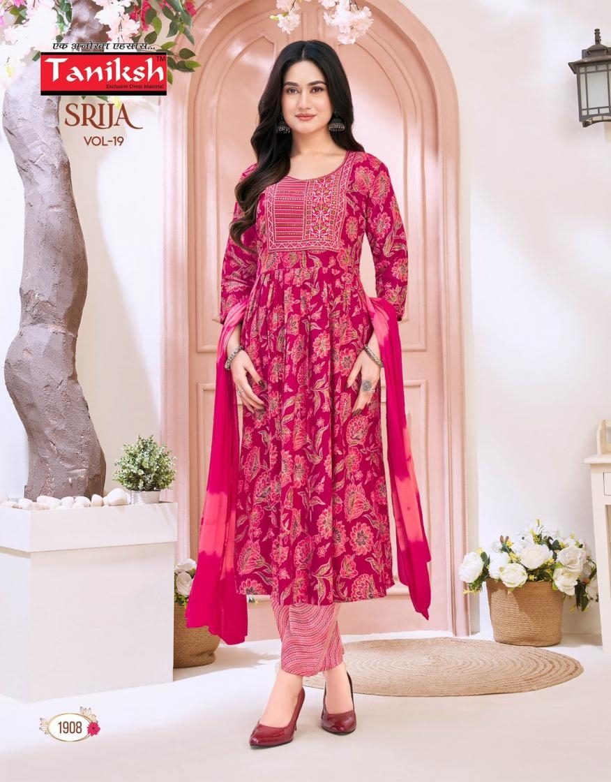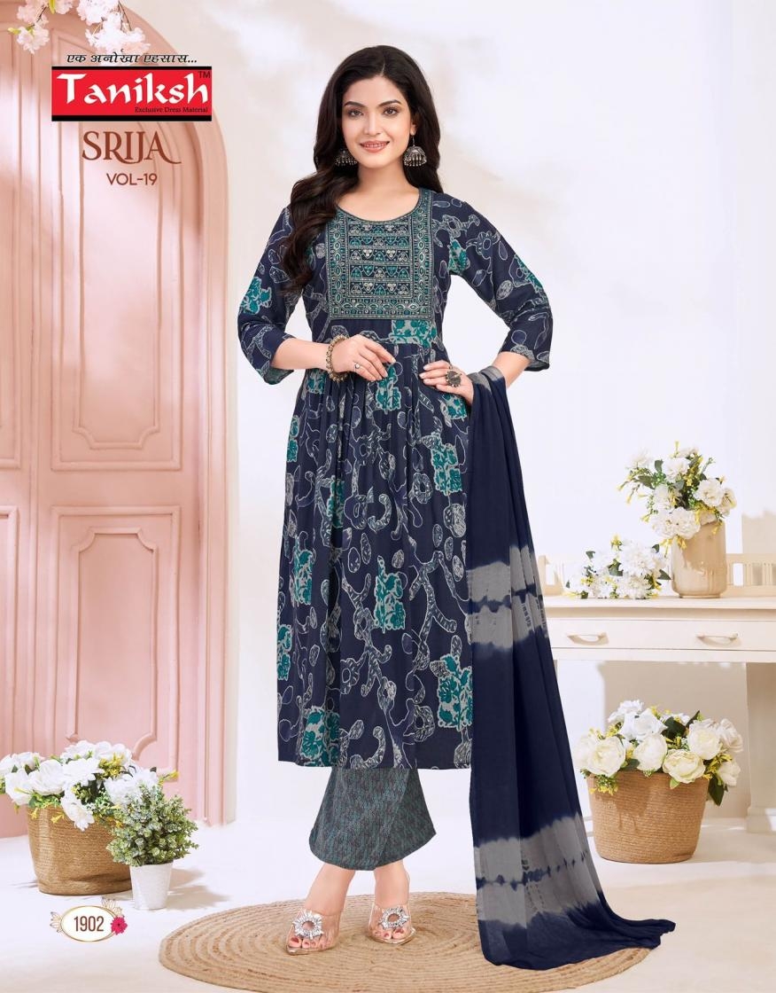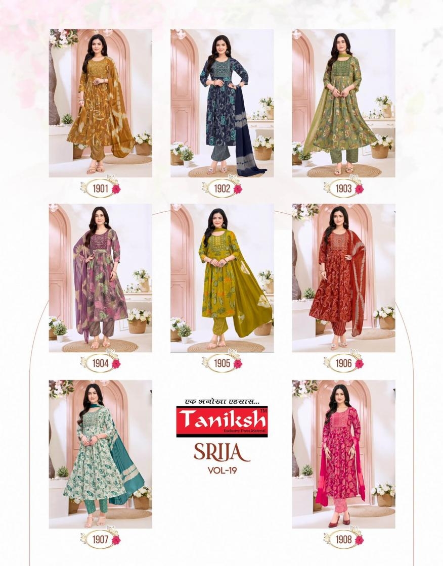 | Name: | Taniksh Srija Vol 19 Series 1901-1908 Capsule Print Wholesale Readymade Suit |