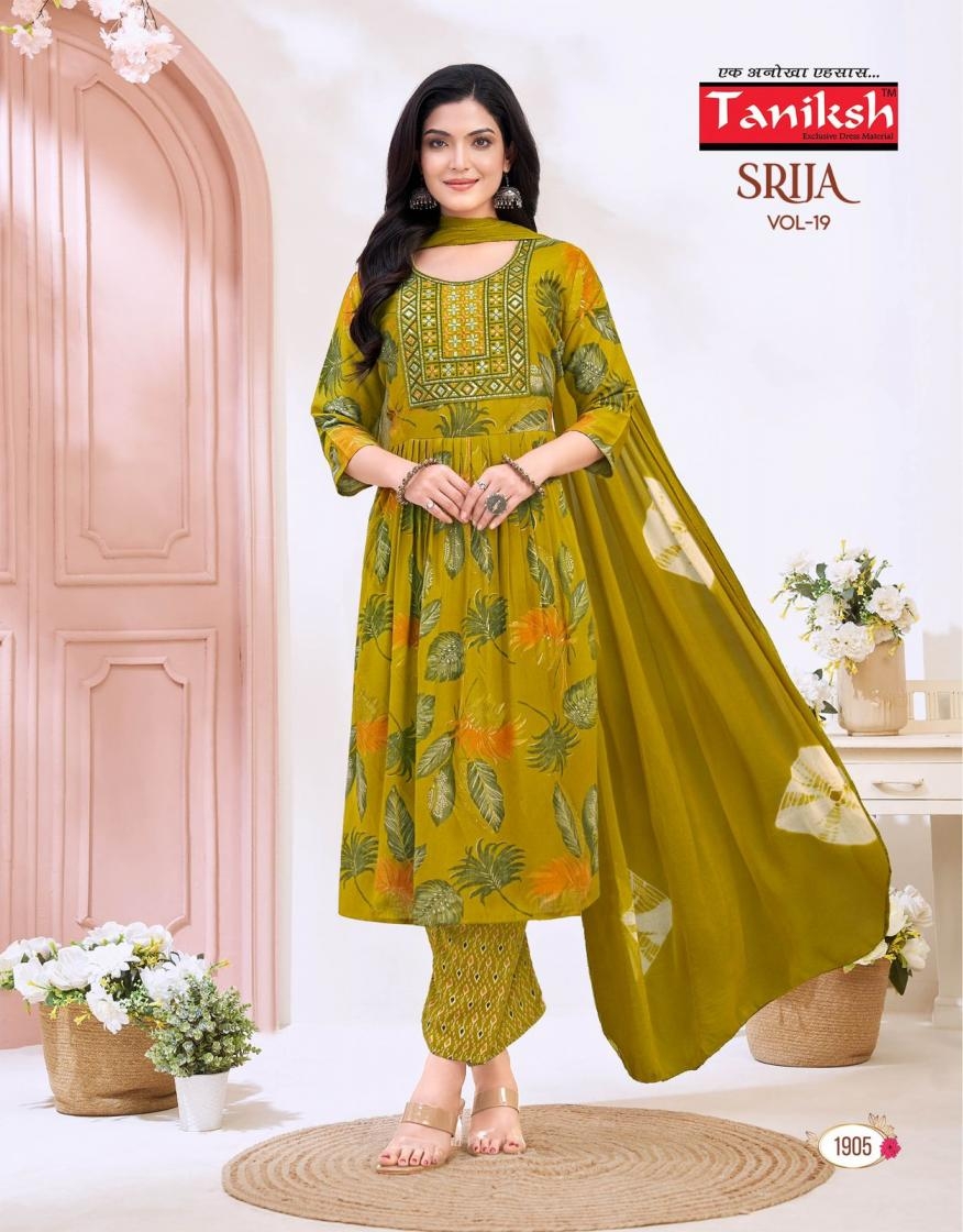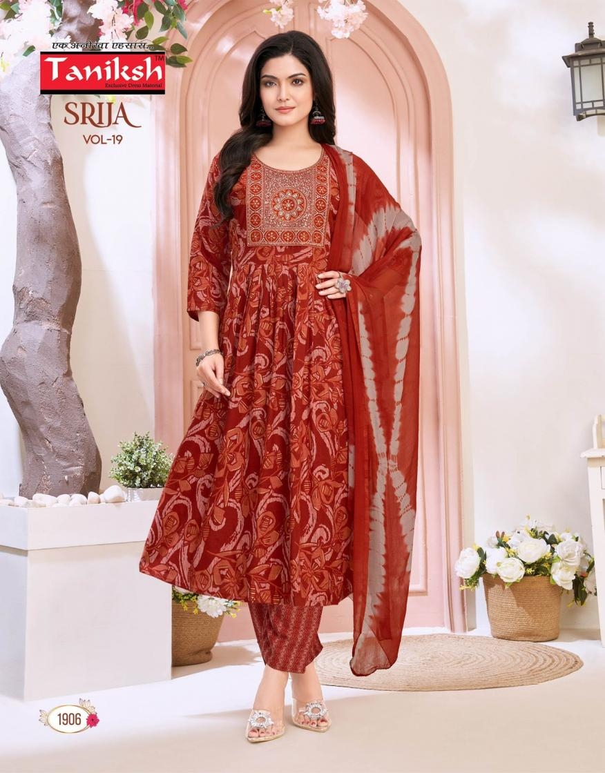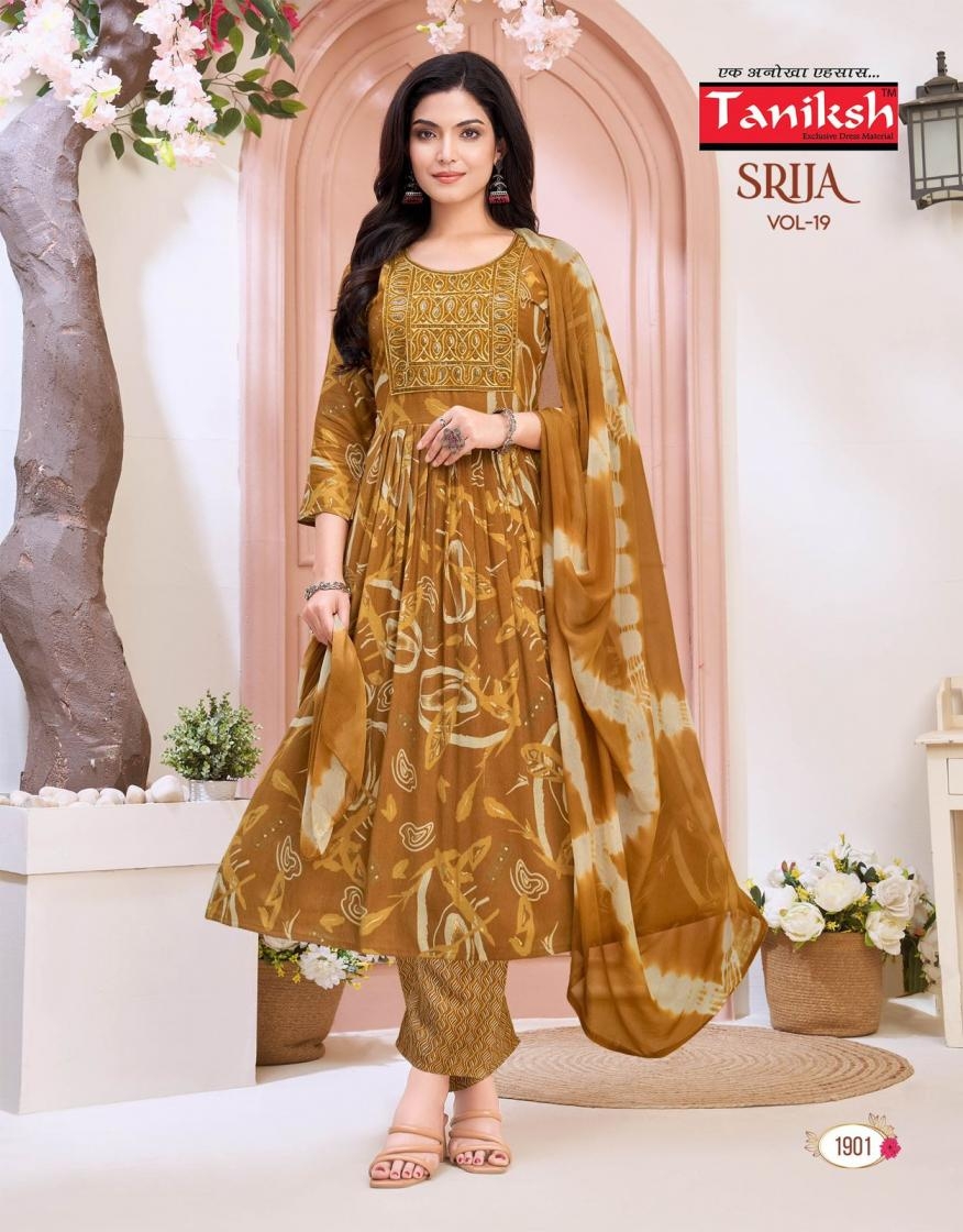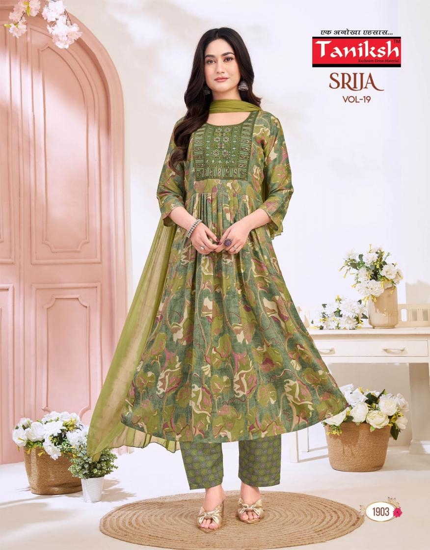 | Name: | Taniksh Srija Vol 19 Series 1901-1908 Capsule Print Wholesale Readymade Suit |