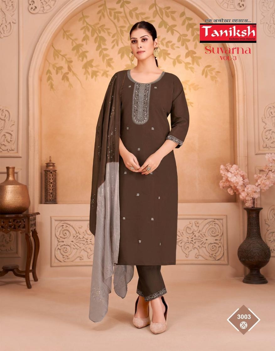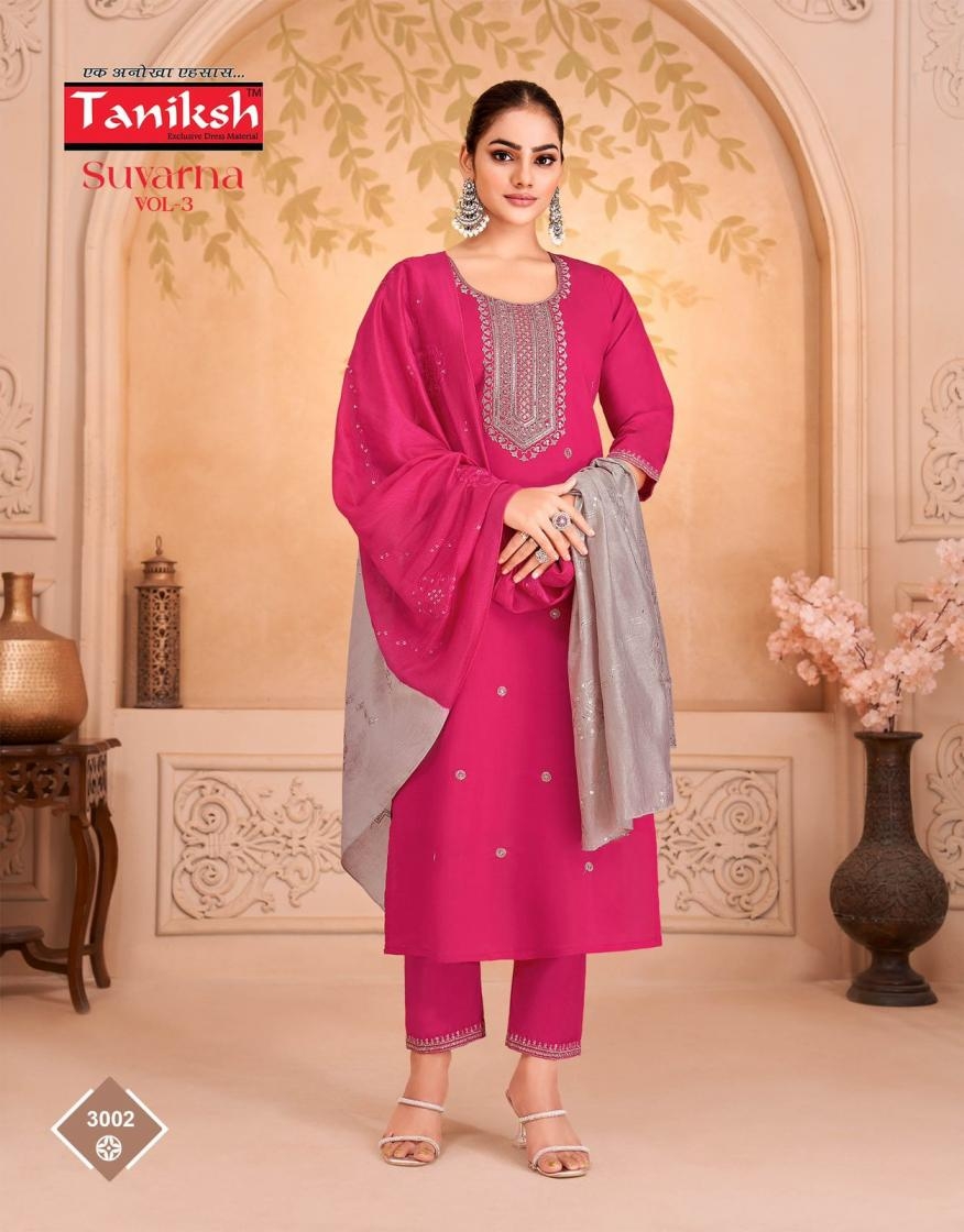 | Name: | Taniksh Suvarna Vol 3 Series 3001 To 3008 Roman Trendy Readymade Suit In Wholesale Surat |