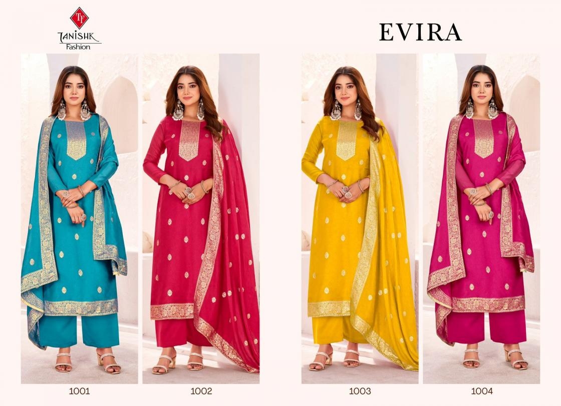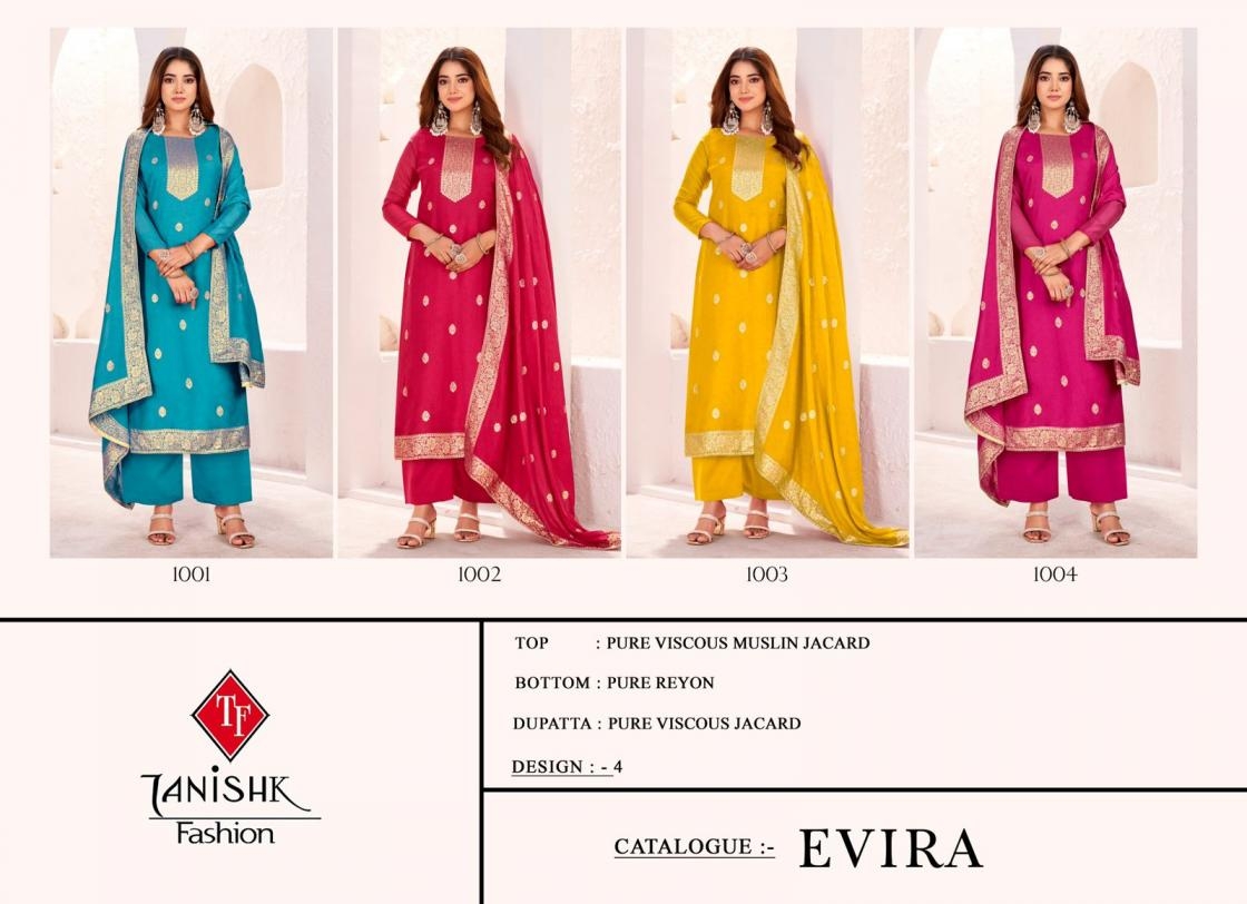 Name: | Tanishk Evira Series 1001 To 1004 Viscose Muslin Jacquard Gorgeous Look Salwar Kameez In Wholesale Surat |