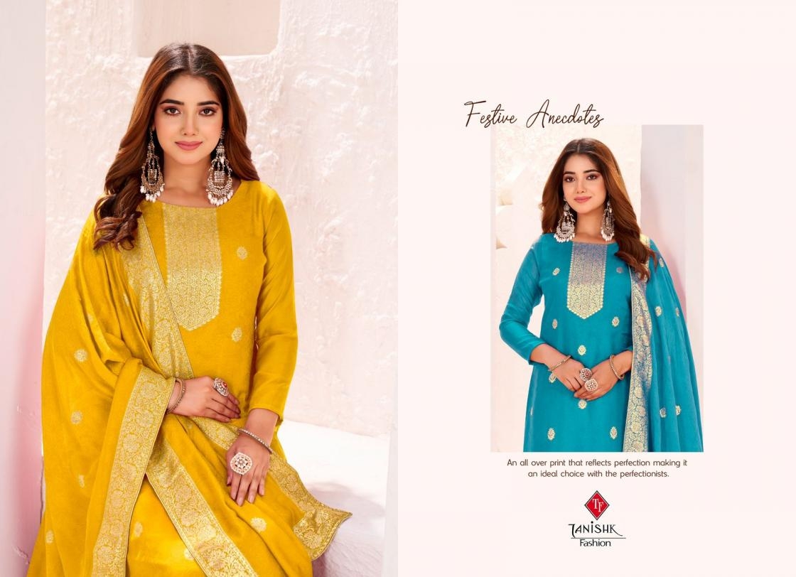 Other Details: | ❤️EVIRA-FESTIVE SUIT KARWA CHOWTH SPECIAL TANISHK- BRAND ❤️EVIRA BY TANISHK❤️ ❤️EVIRA-MUSLIN JACARD❤️ ❤️Special:-Festive & wedding❤️ Please confirm ur order now Regards:- Rsf-Tanishk Surat |