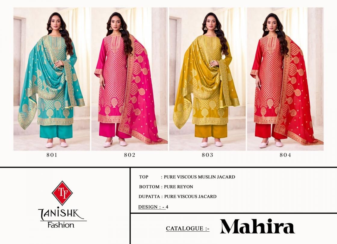 | Name: | Tanishk Fashion Mahira Series 801 To 804 Muslin Jacquard Salwar Kameez In Wholesale Surat |