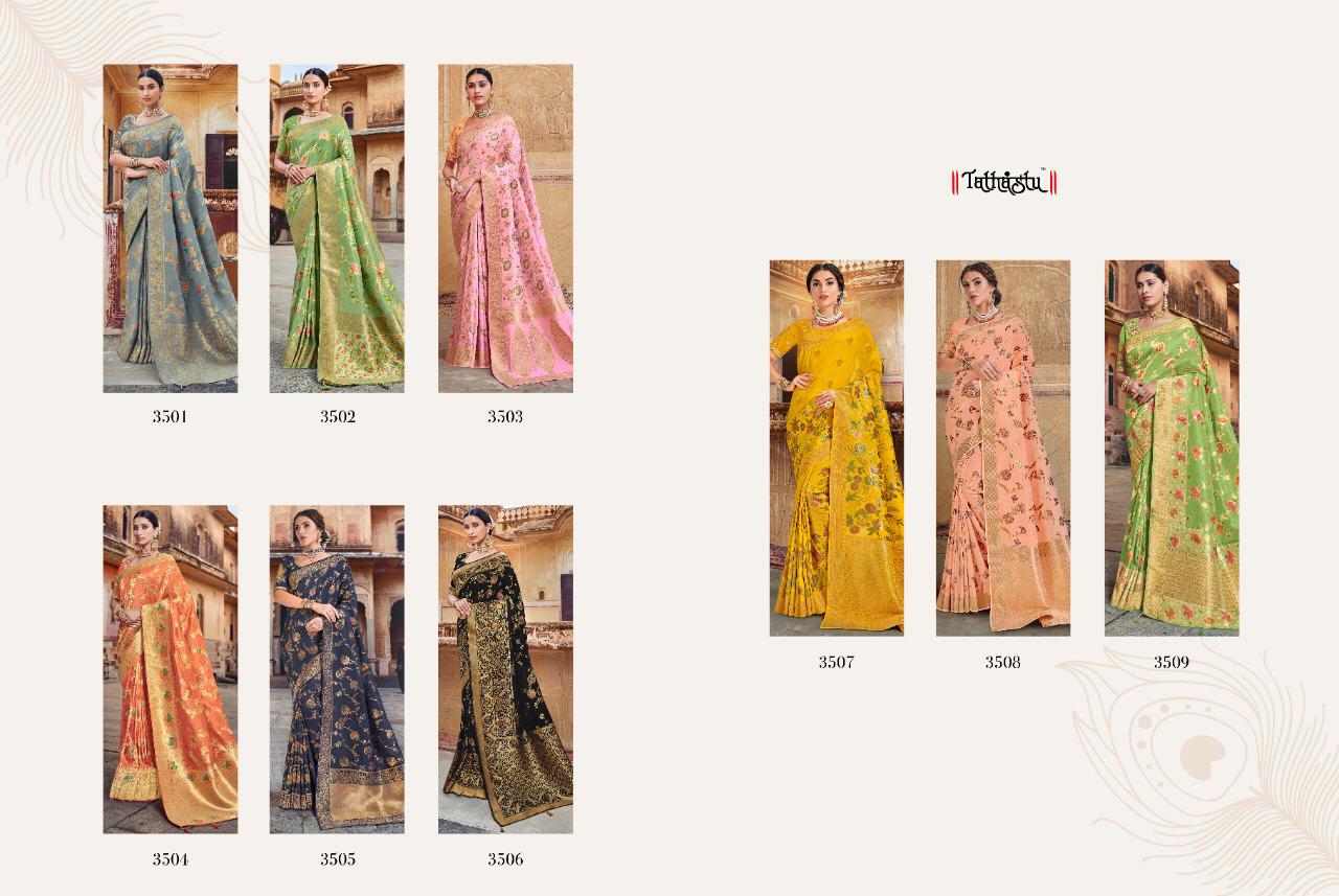 | Name: | Tathastu 3501-3509 Series Silk Festival Wear Ethnic Saree Designs Surat Supplier |