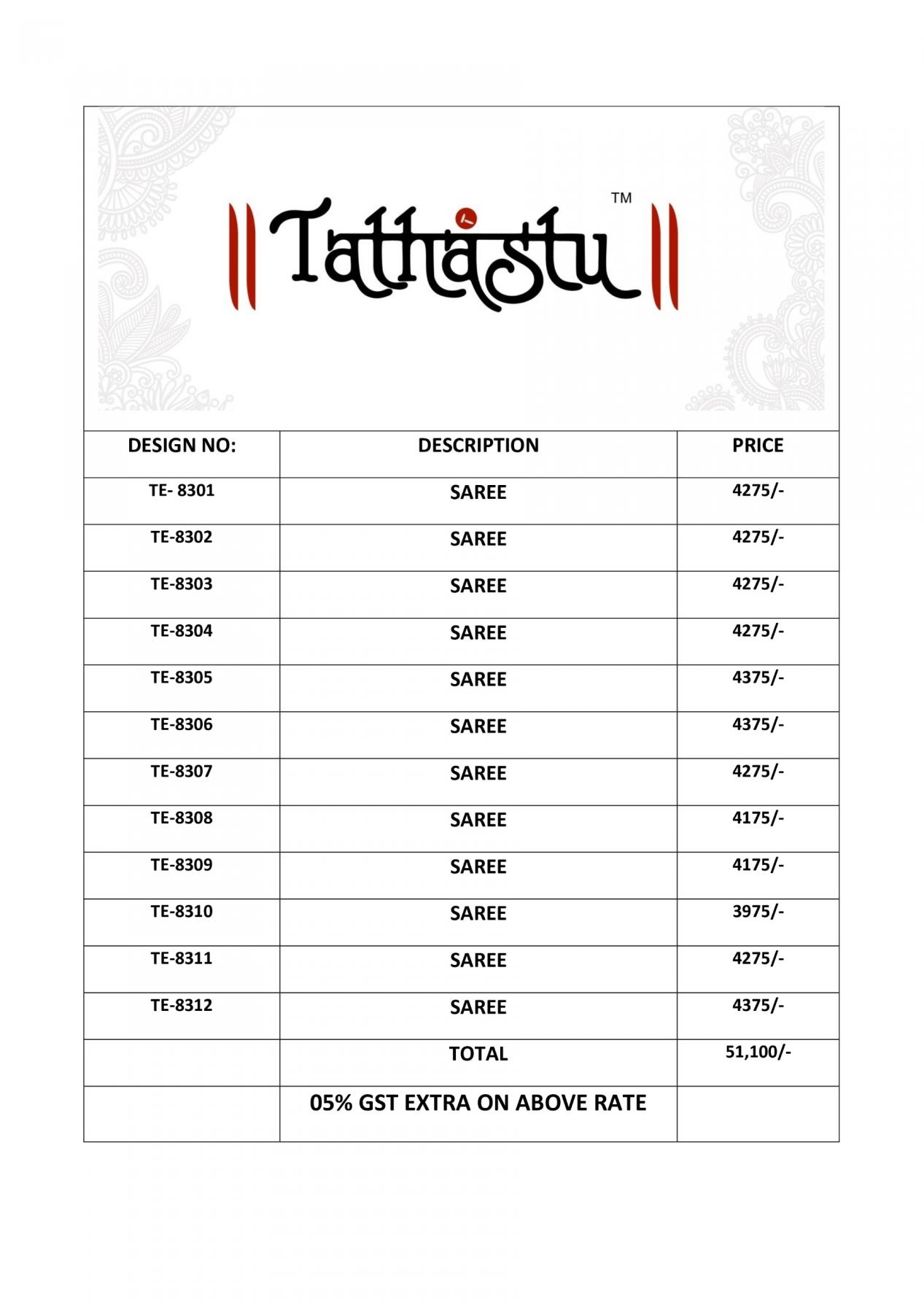 | Name: | Tathastu Anaara 8301-8312 Fancy Silk Party Wear Saree | |