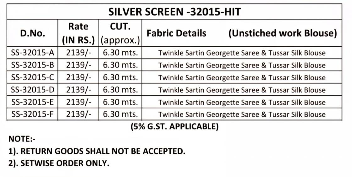 | Name: | Tfh Silver Screen 32015 Sartin Georgette Wholesale Saree | |