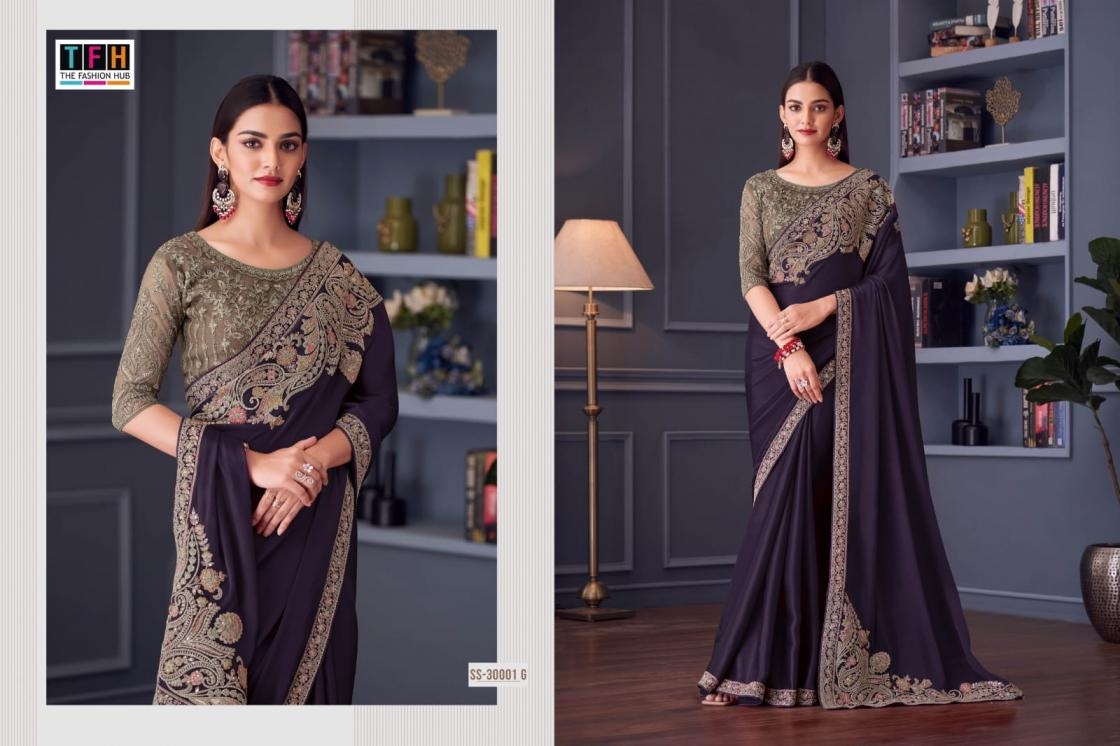 | Name: | Tfh Silver Screen Series 30001a -30001g Florence Sartin Silk Wholesale Saree |