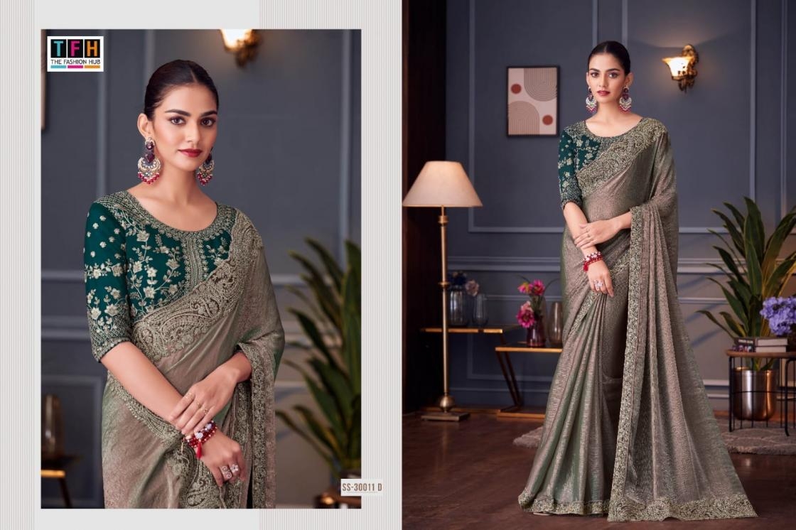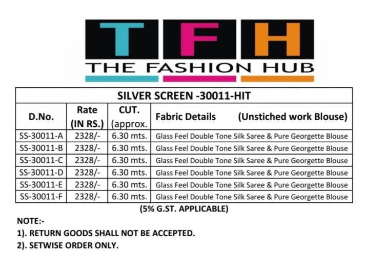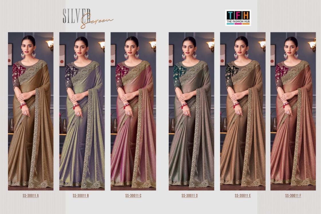 | Name: | Tfh Silver Screen Series 30011a -30011e Tone Silk Wholesale Saree In Surat | |