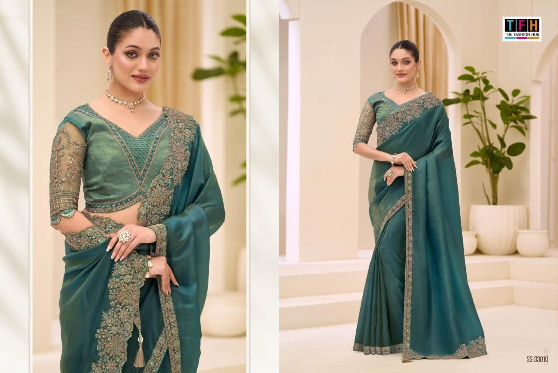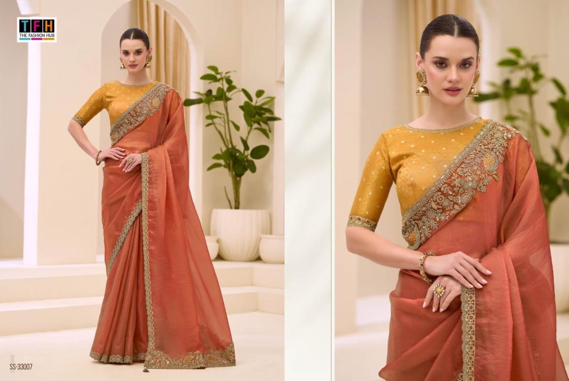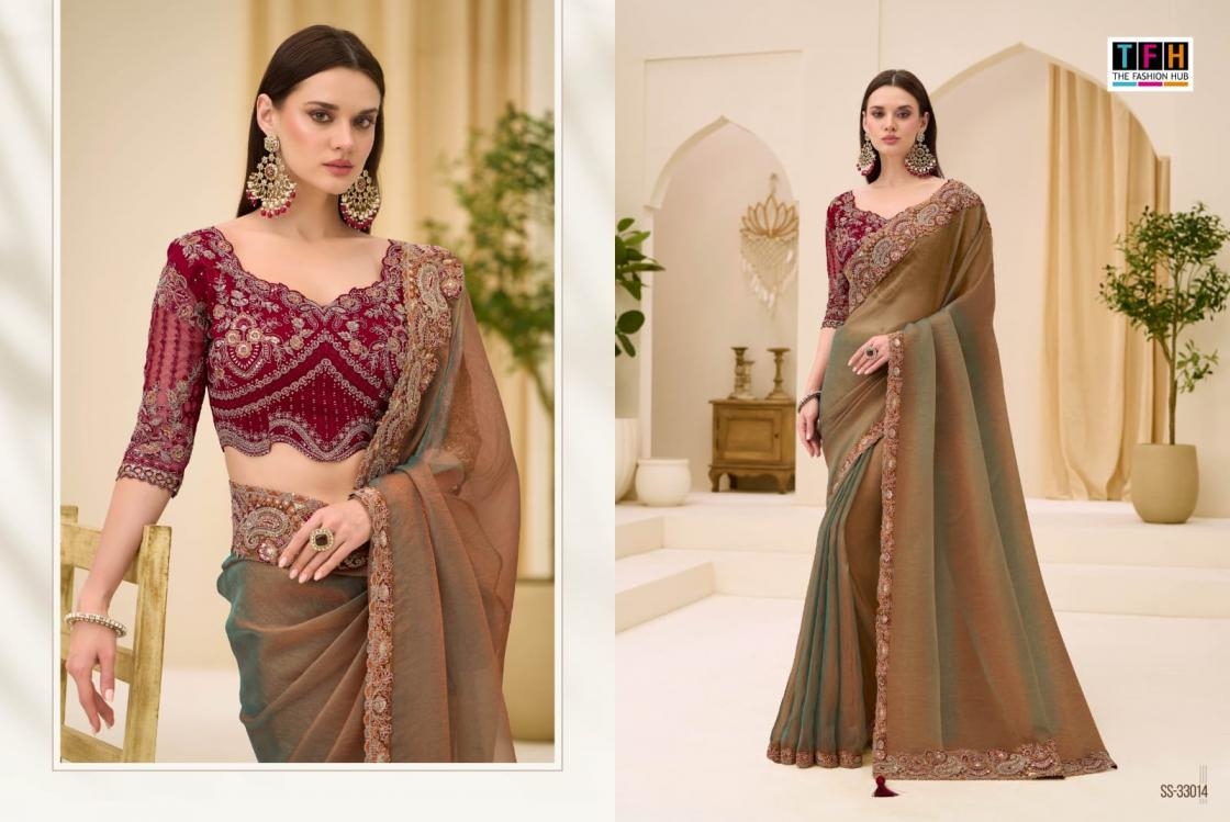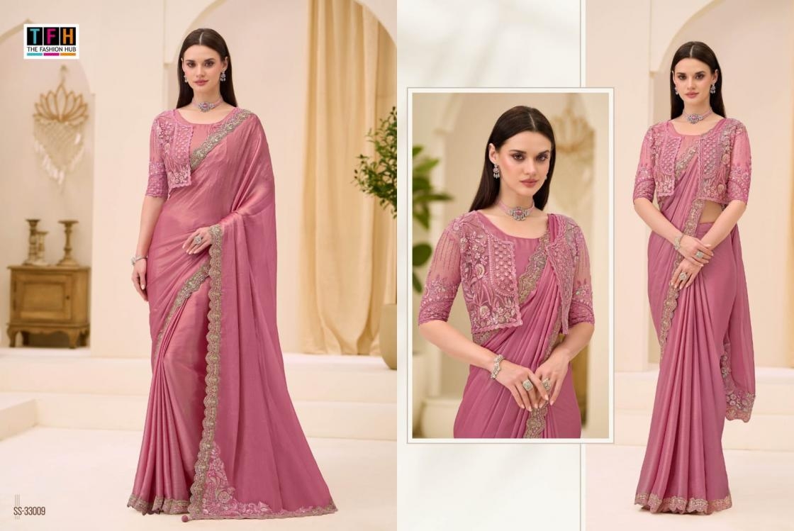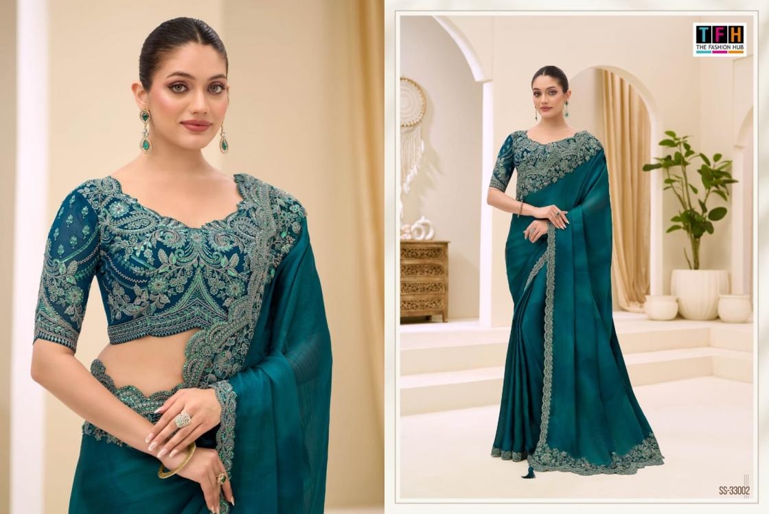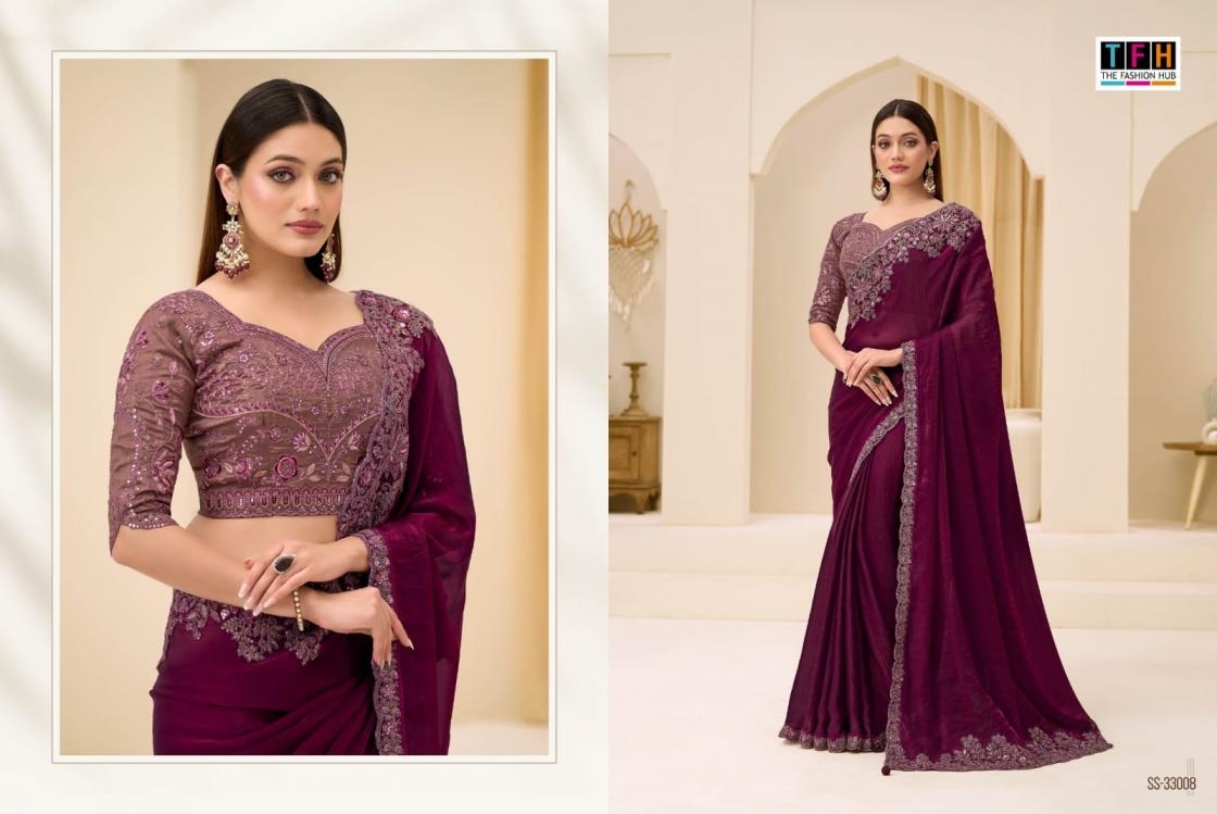 | Name: | Tfh Silver Screen Vol 23 Series 33001-330018 Satin Chiffon Wholesale Saree | |