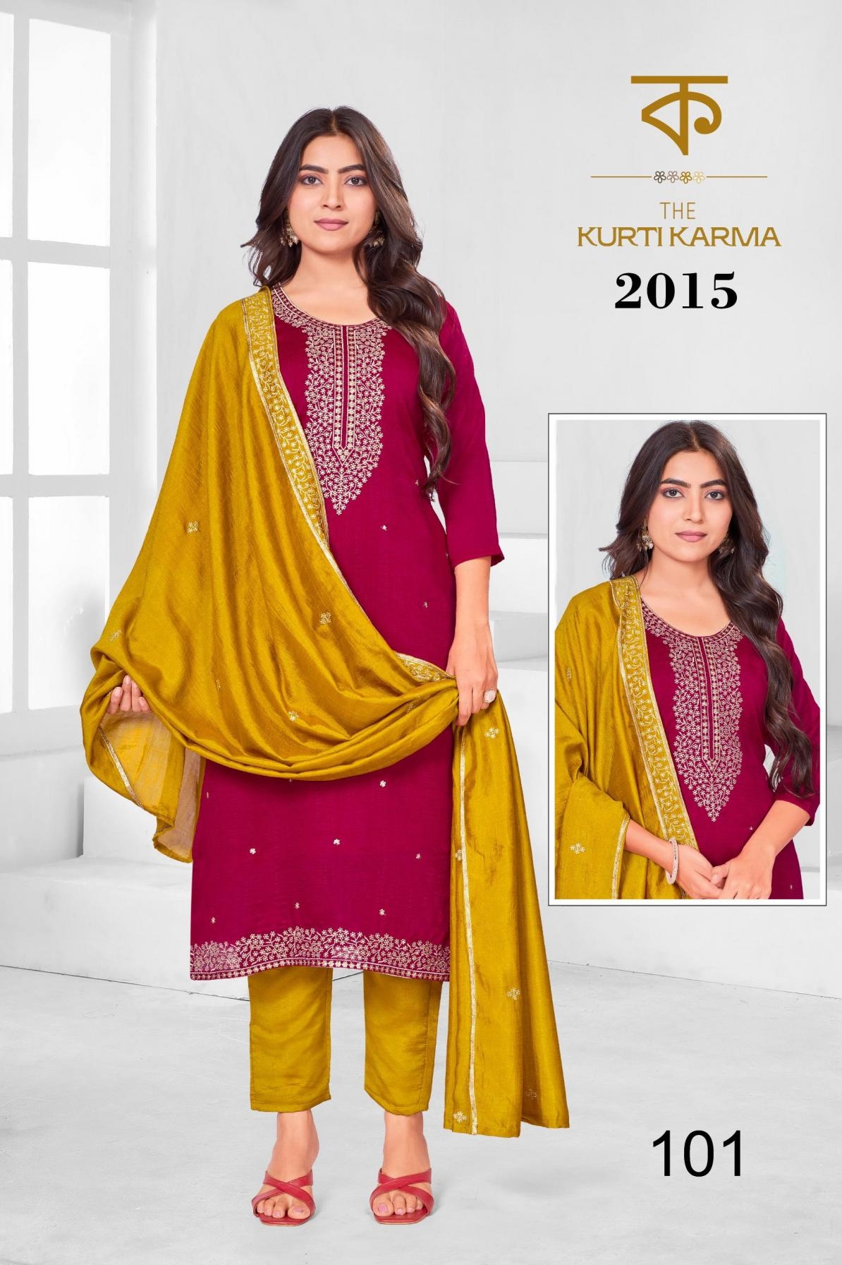 Other Details: | 🌟 THE KURTI KRAMA 🌟 We are back again to excite you with our latest 3 pcs set launch: 👗 Catalog Name: 2015 Warm Regards, |