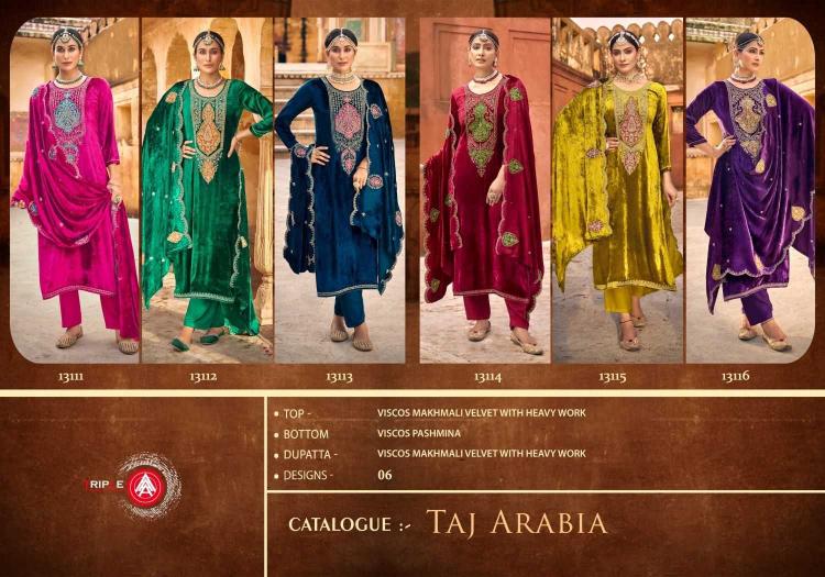 Name: | Triple A Taj Arabia Series 13111-13116 Viscos Makhmali Velvet Wholesale Salwar Kameez In Surat |