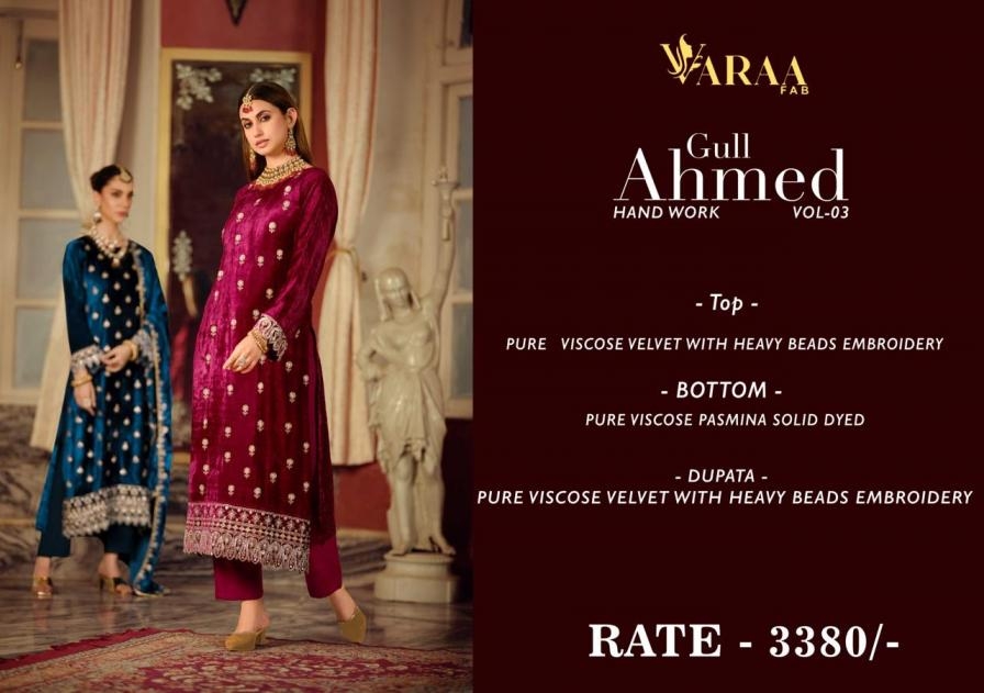| Name: | Varaa Fab Gull Ahmed Vol 3 Series 1901 To 1904 Viscose Velvet Winter Special Salwar Kameez In Wholesale Surat | |