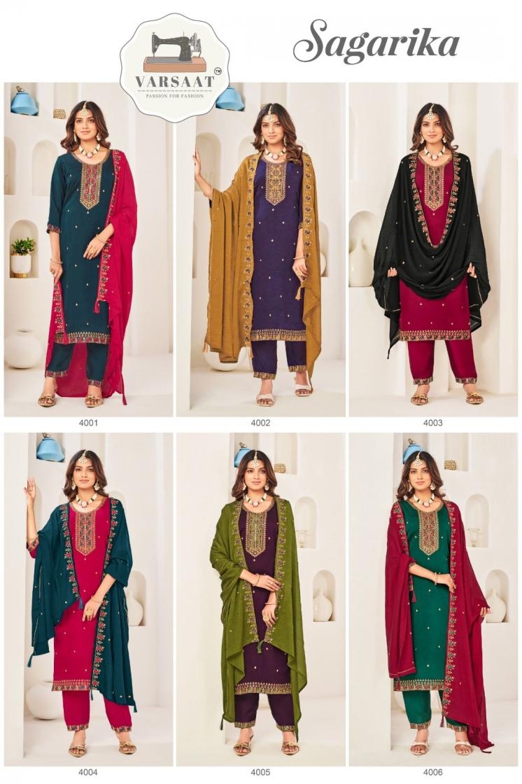 | Name: | Varsaat Sagarika Series 4001-4006 Rangoli Crush Blooming Readymade Suit | |