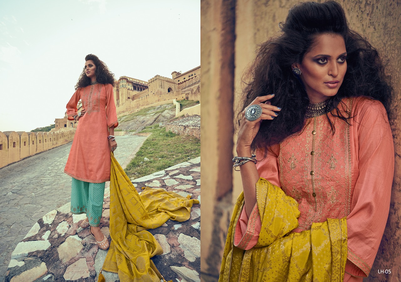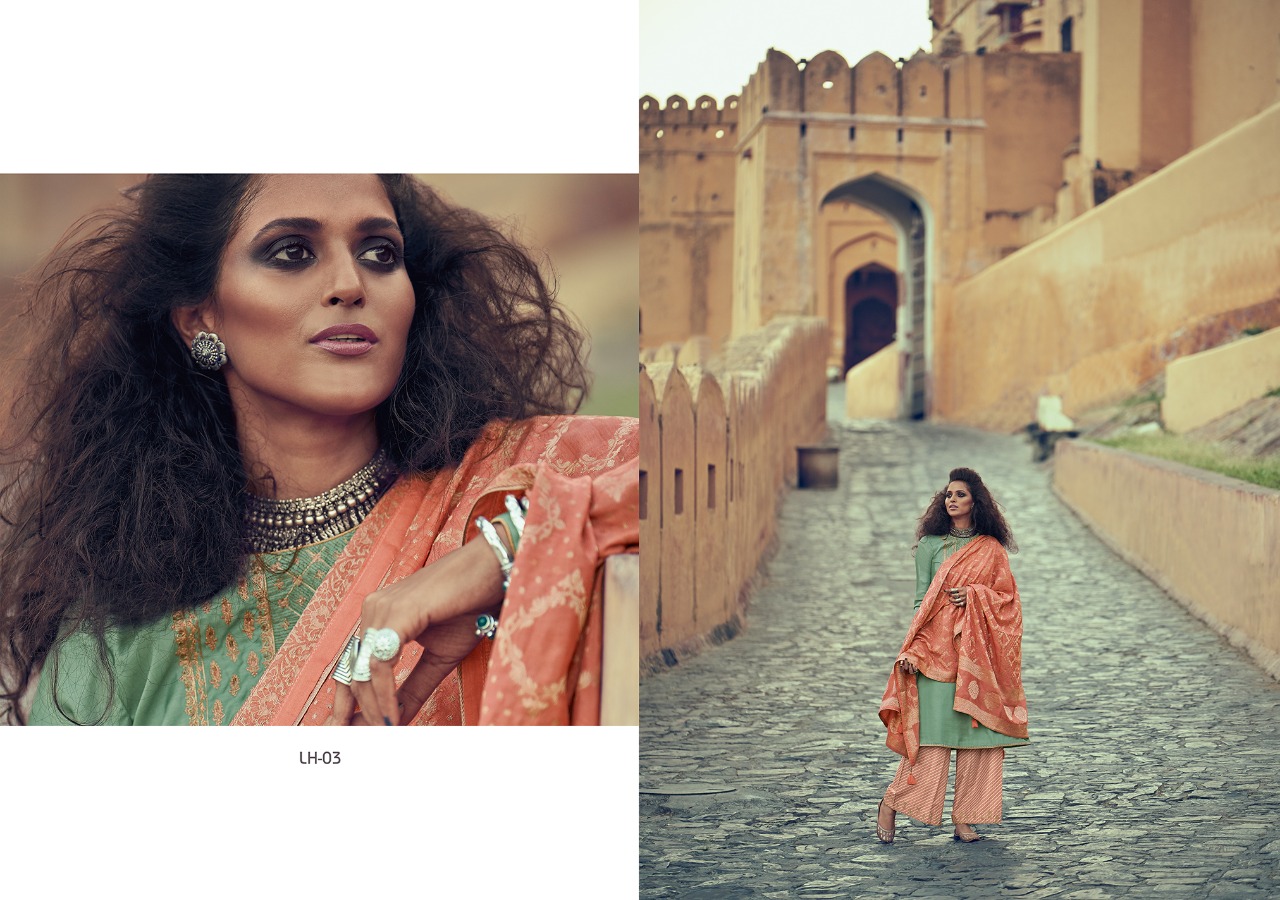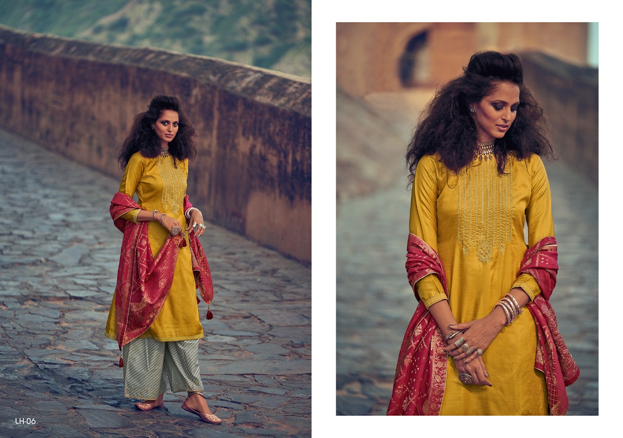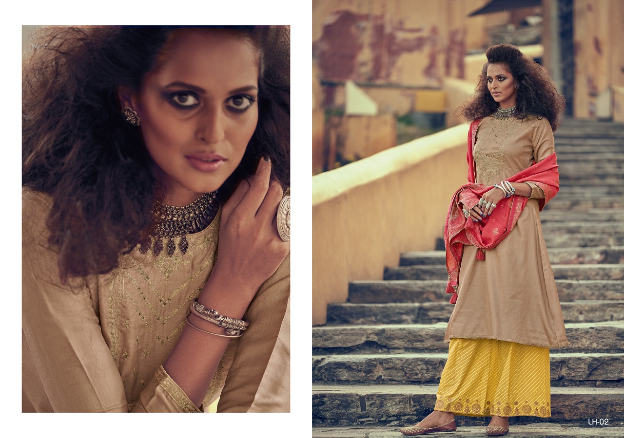 | Other Details: | Presenting to you our new catalogue. LEHARIYA From – Varsha Top -Pure Tussar Silk With Designer Embroidery Bot – Finest Lawn With Embroidery Dup – Pure Banarasi Weaving Solid Rate:- 2140/- 1 Set:- 06 pcs. |