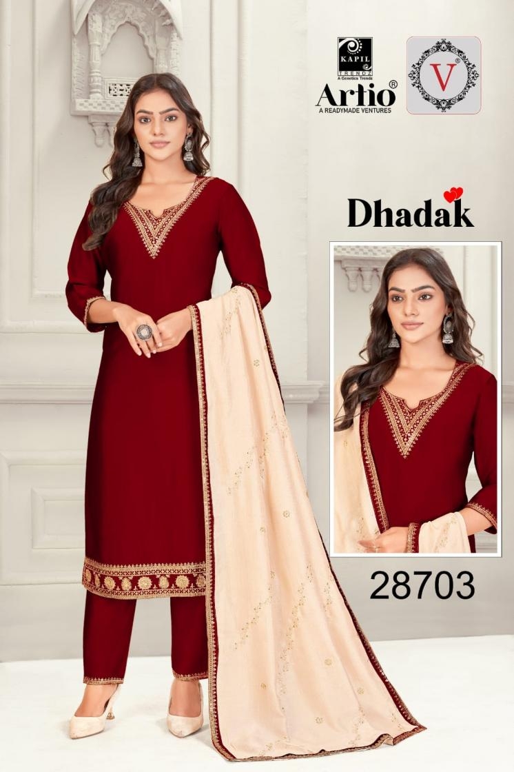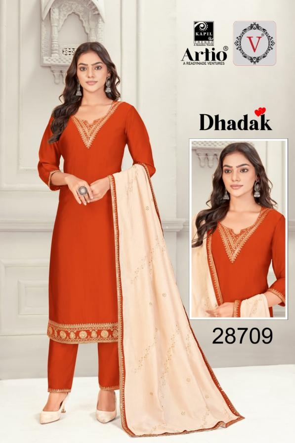 | Name: | Veda Kapil Trendz Artio Dhadak Series 28701 To 28710 Full Stitch Rangila Silk Combo Suits In Wholesale Surat |