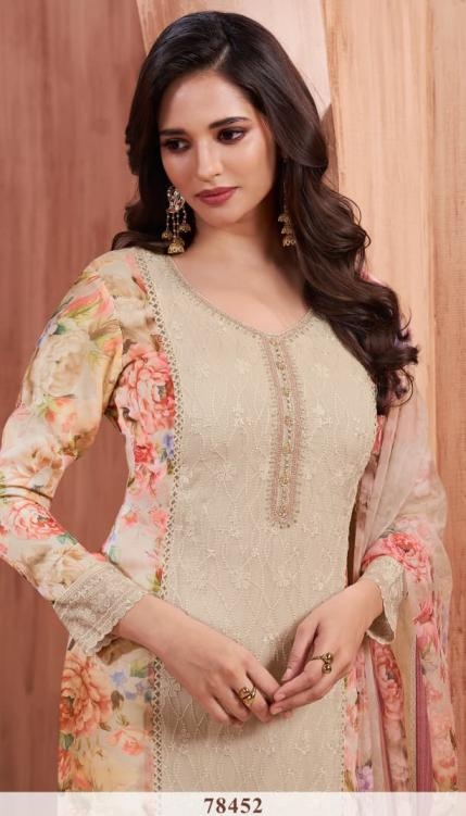 | Name: | Vinay Kuleesh Pankh Series 78451-78454 Silk Chiffli Work Suit |