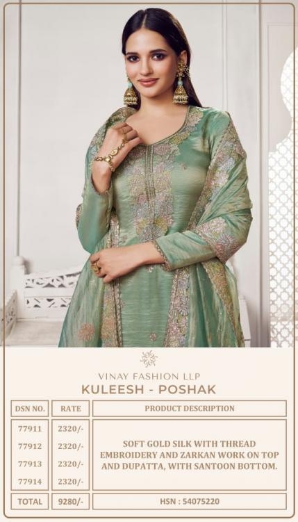 | Name: | Vinay Kuleesh Poshak Series 77911 To 77914 Gold Silk Designer Advanced Salwar Kameez In Wholesale Surat |