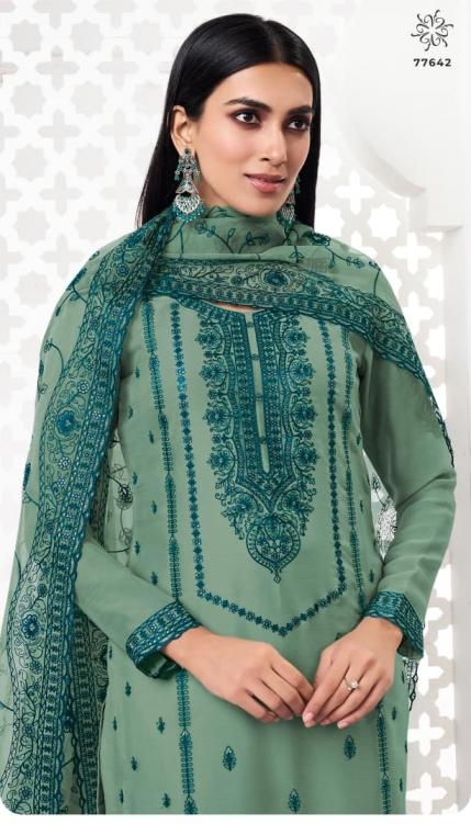 | Name: | Vinay Kuleesh Saahi Series 77641-77644 Organza Chiffon Wholesale Suit |