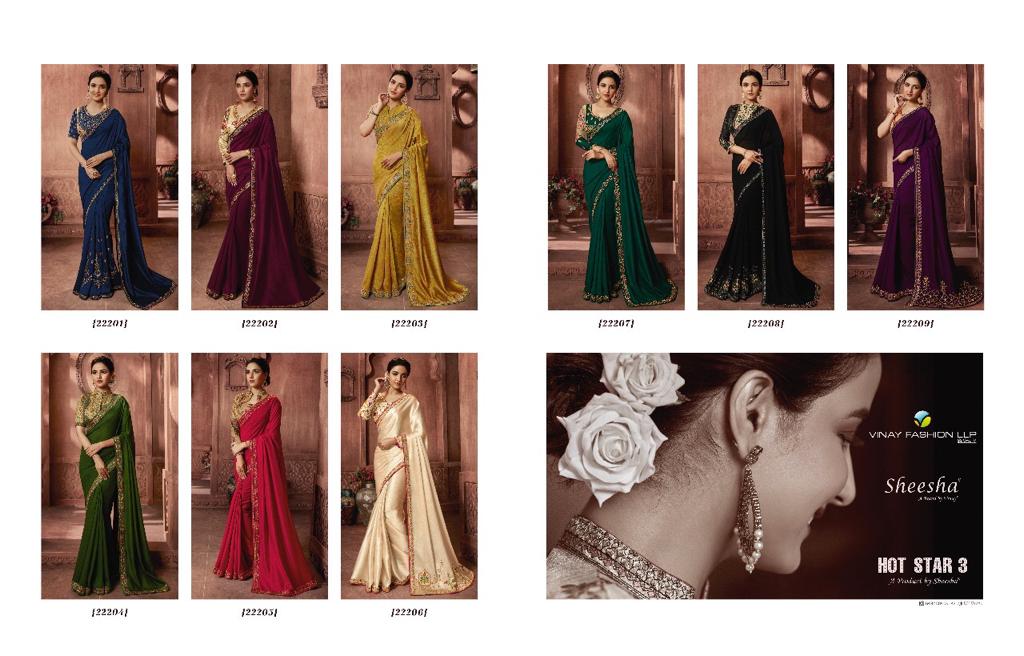 | Other Details: | VINAY FASHION……….. SHEESHA HOTSTAR-3 HOTSTAR SILK WITH EMBROIDERY DIGITAL PRINT RATE – ASK ON WHATS APP |