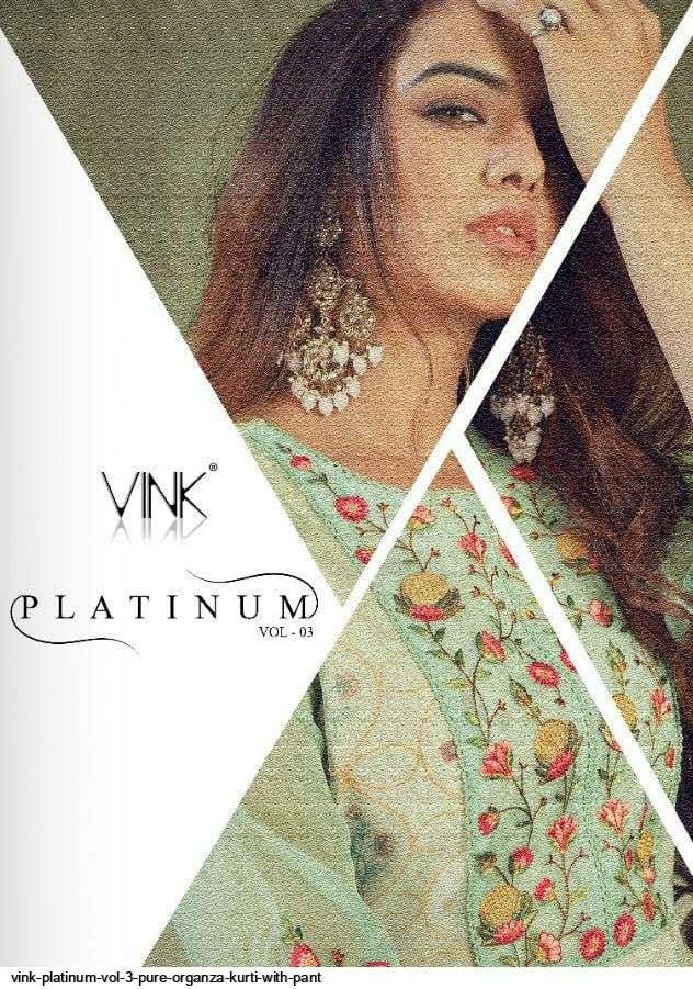 Other Details: | Premium Festive Wear from VINK! PLATINUM 3 BY VINK Kurta + Pants. Fabric - Pure Organza Kurta & Printed Cotton Inner with Handwork and Embroidery. Pants with embroidery. Rate - ₹ 999/- LIMITED STOCK |
