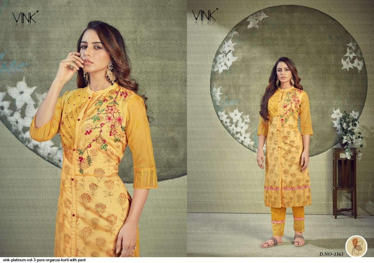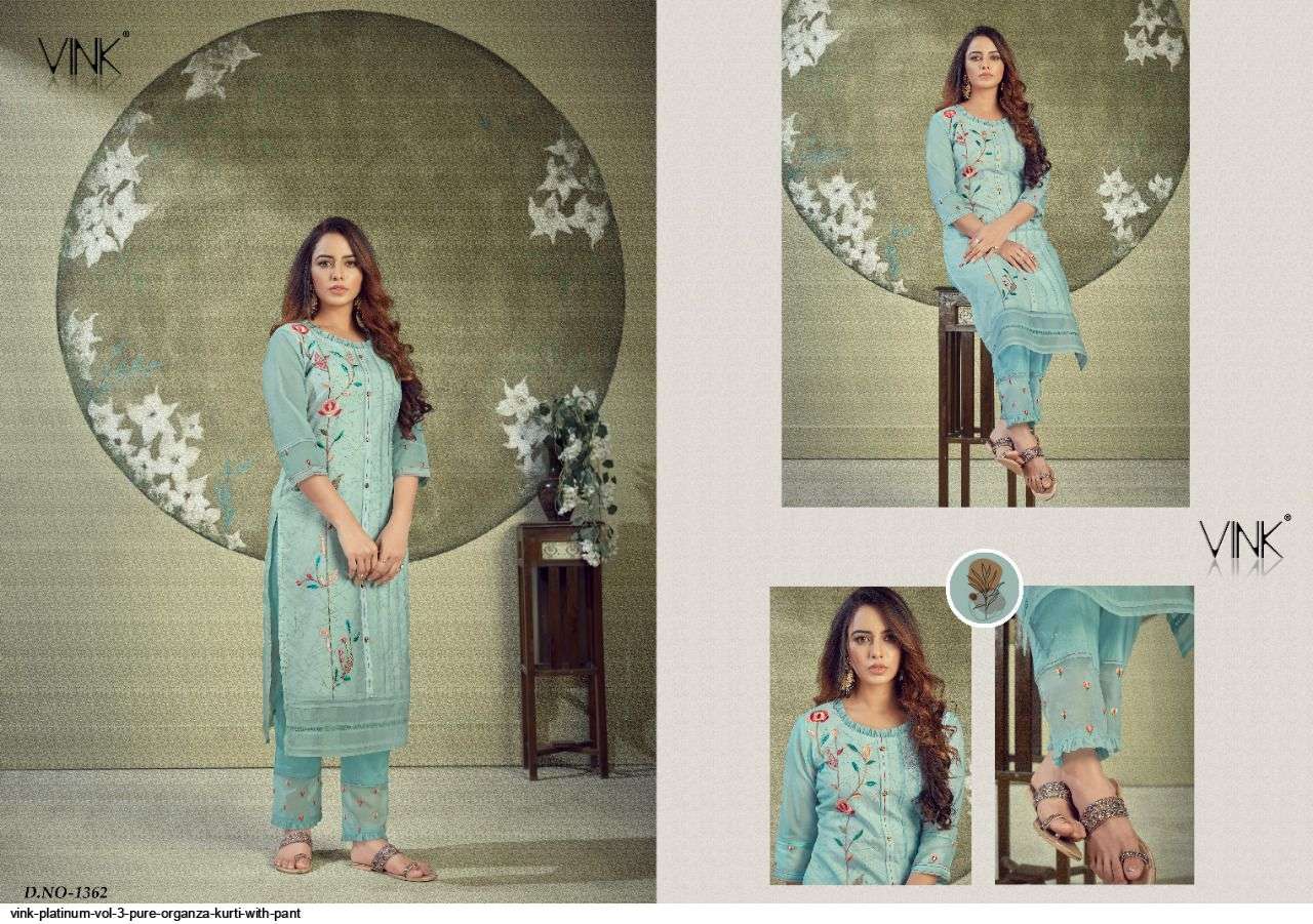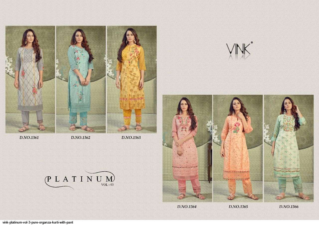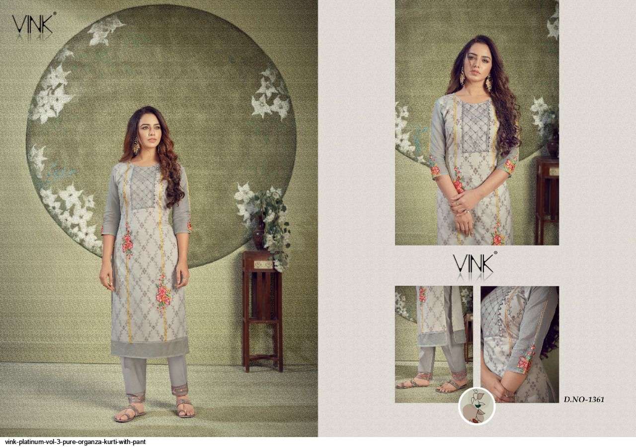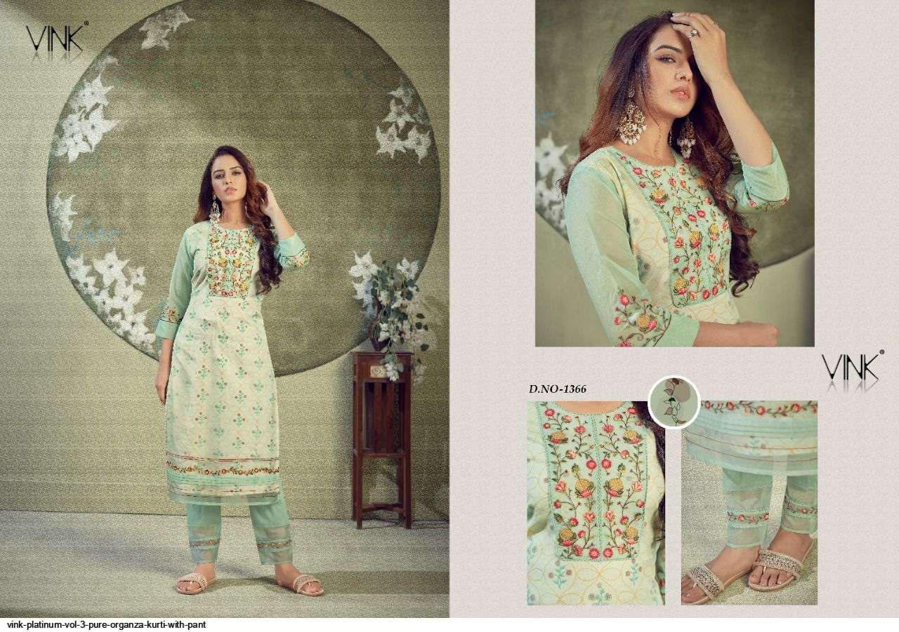 Name: | Vink Platinum Vol 3 Series 1361-1366 Pure Organza Kurti |