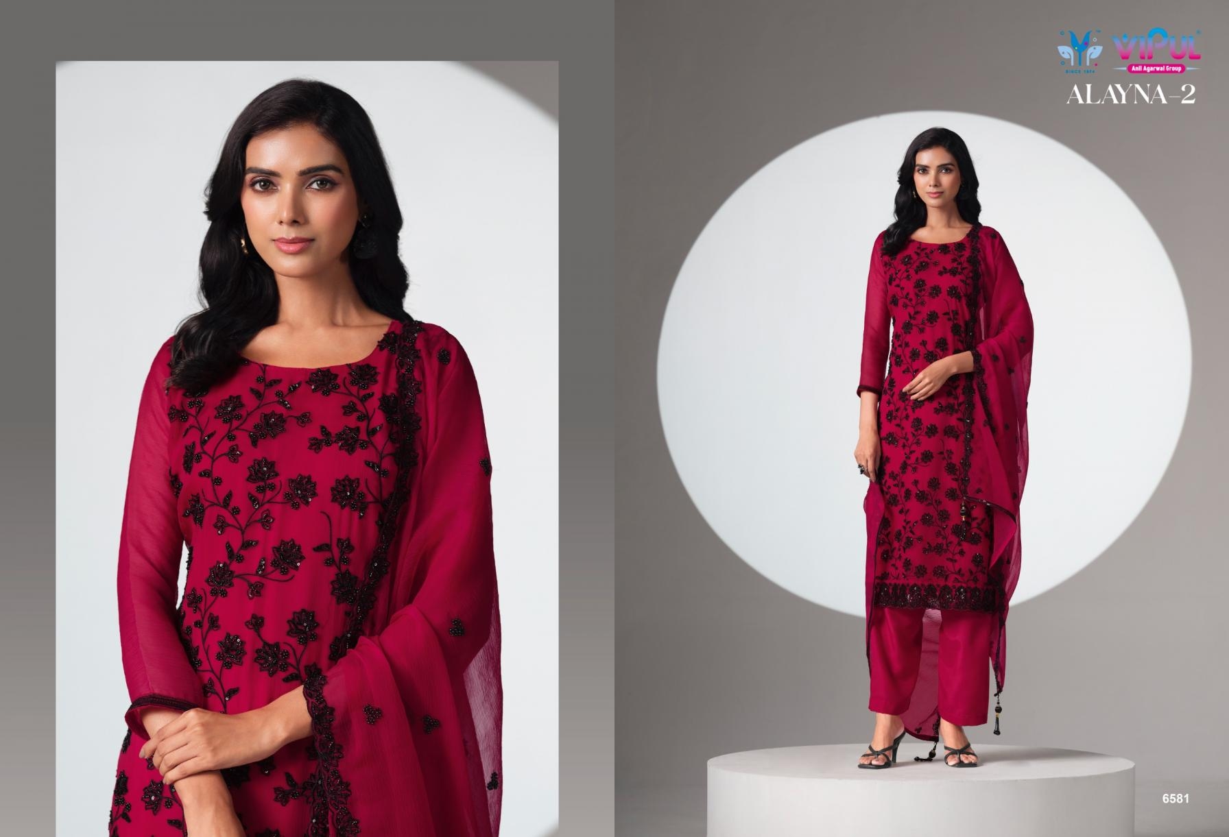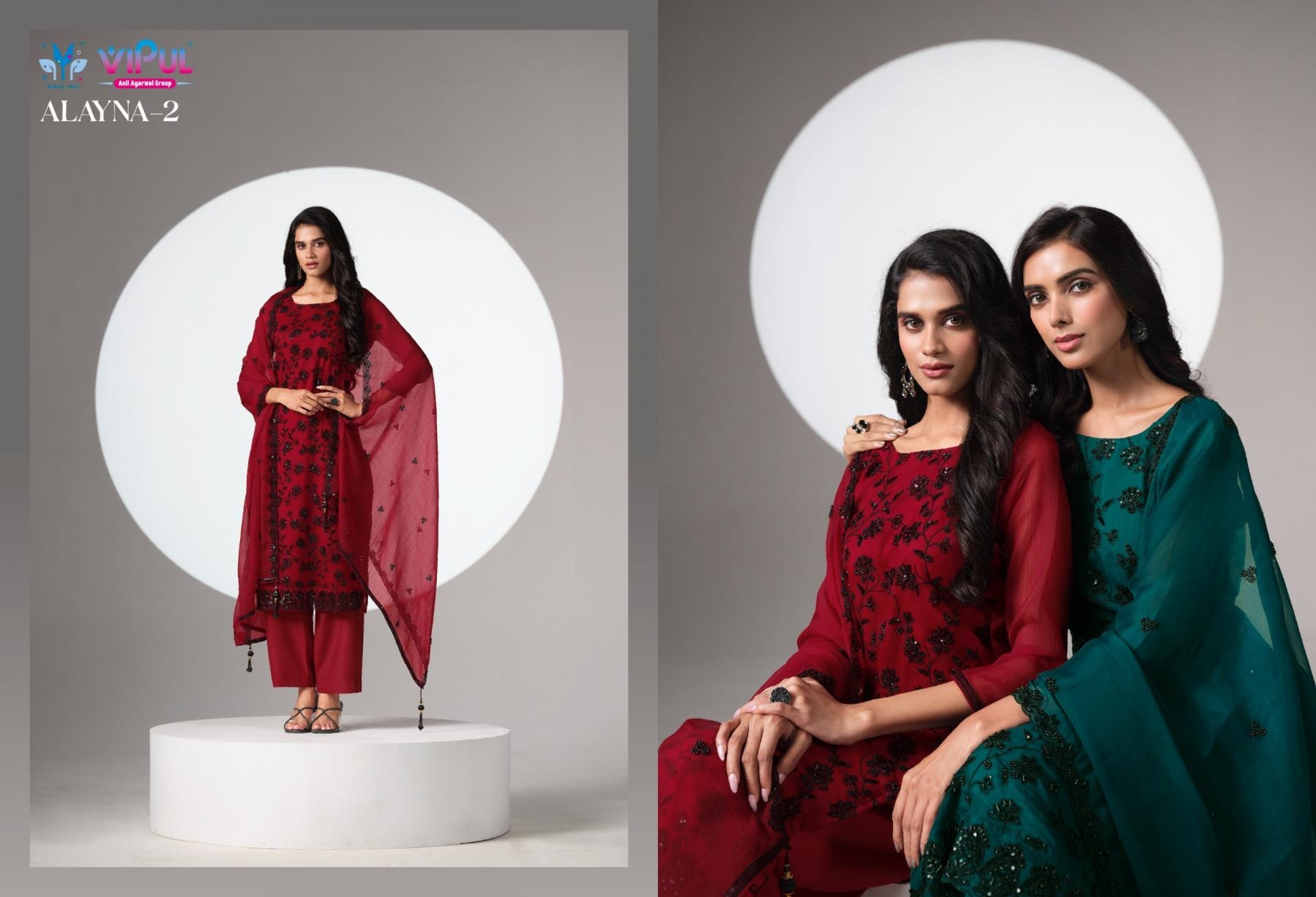 | Other Details: | Vipul launching Alayna 2 Top - Crinkle Chiffon with all over Beads embroidery. Dupatta - Crinkle Chiffon with Beads embroidery. Bottom & Inner - Soft Santoon. |