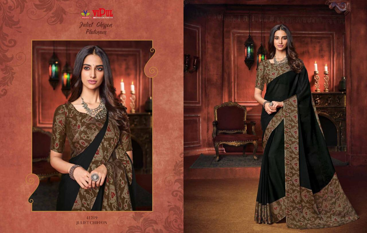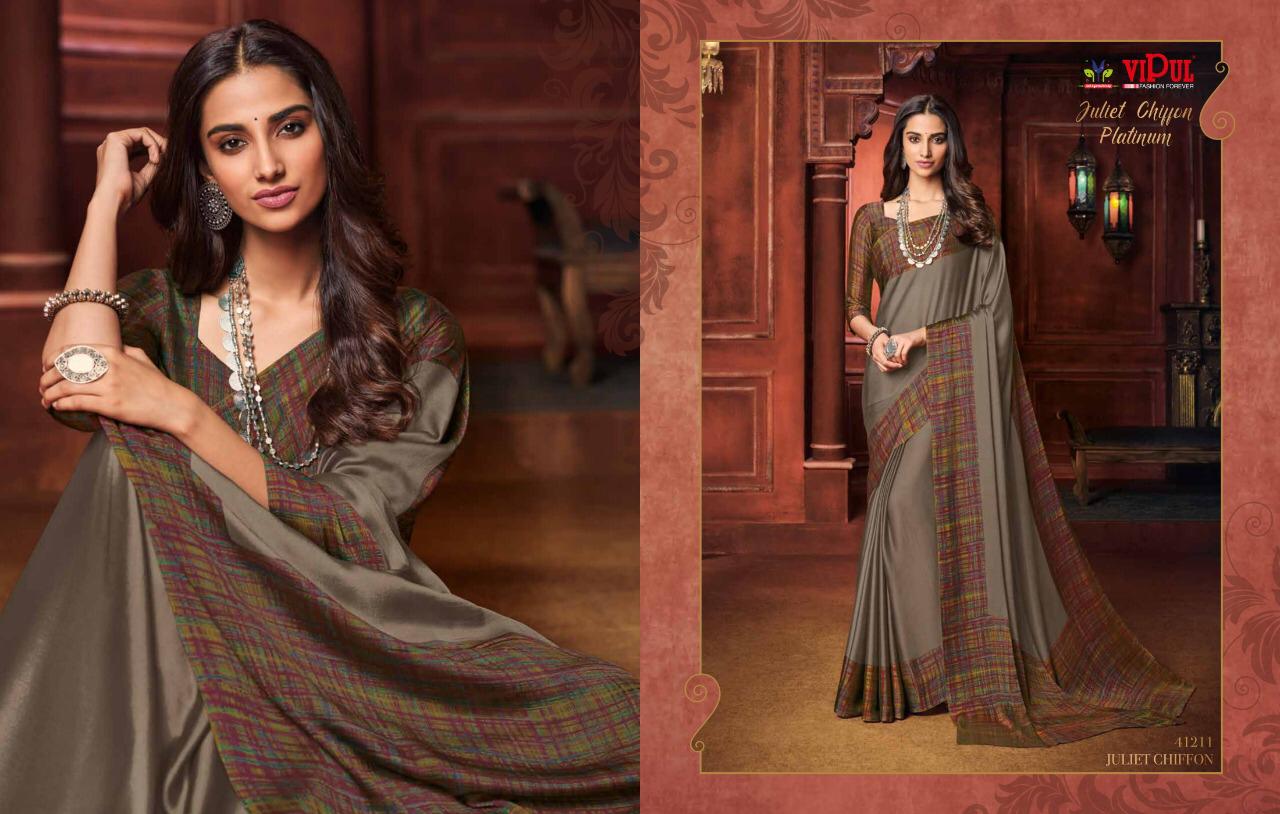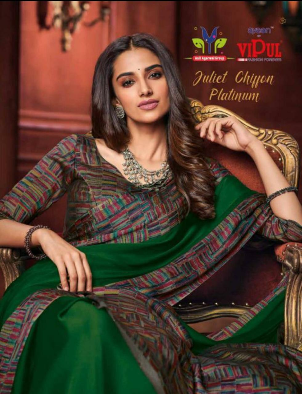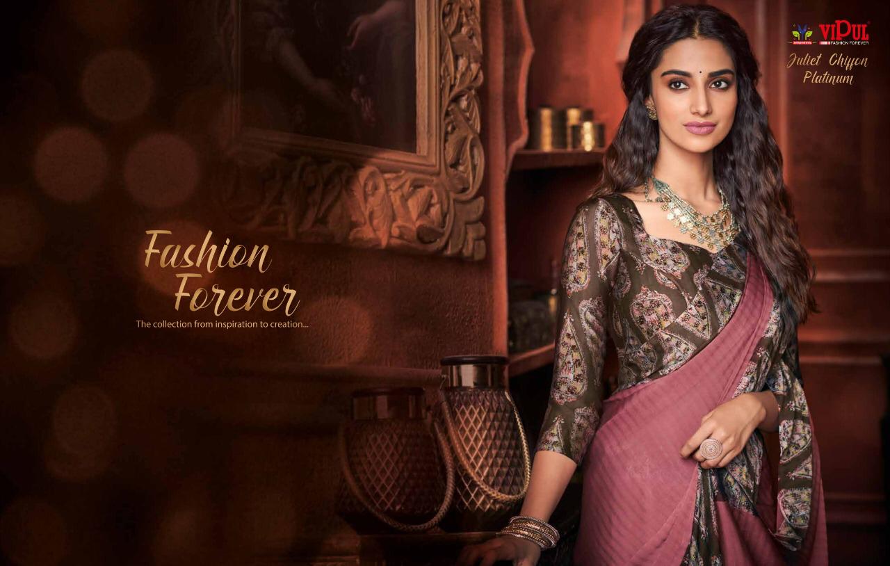 Other Details: | VIPUL Presents – JULIET CHIFFON PLATINUM THE COLLECTION FROM INSPIRATION TO CREATION. RATE-516₹ 5%GST APPLICABLE SET TO SET DELIVERY 2 DAYS |