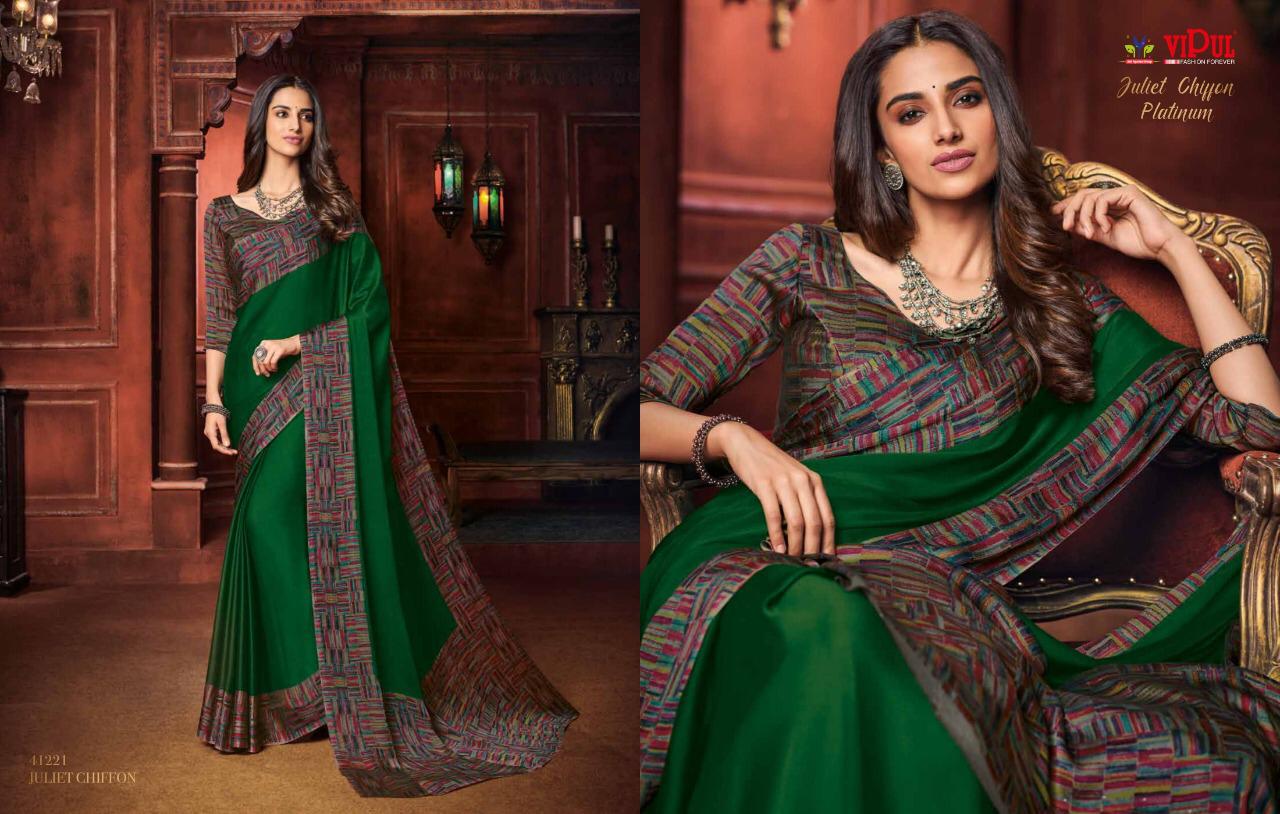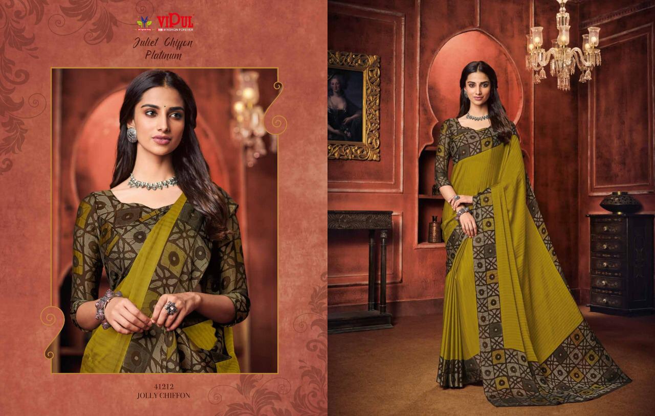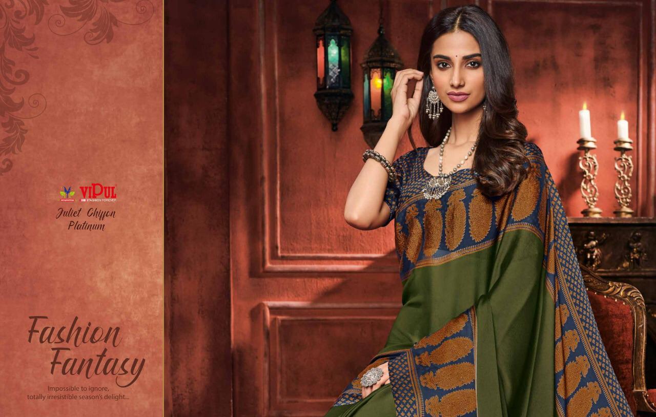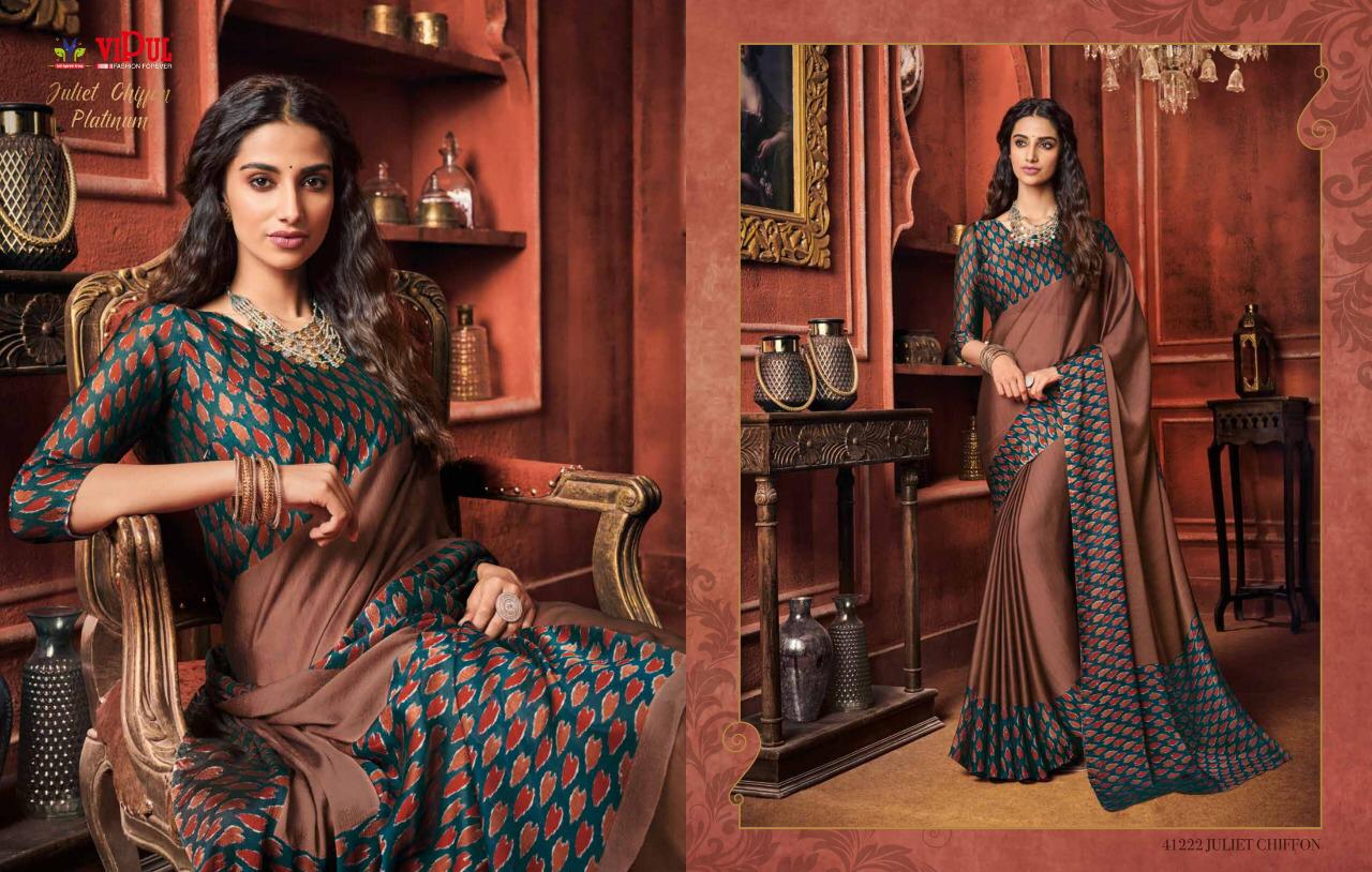 Other Details: | VIPUL Presents – JULIET CHIFFON PLATINUM THE COLLECTION FROM INSPIRATION TO CREATION. RATE-516₹ 5%GST APPLICABLE SET TO SET DELIVERY 2 DAYS |